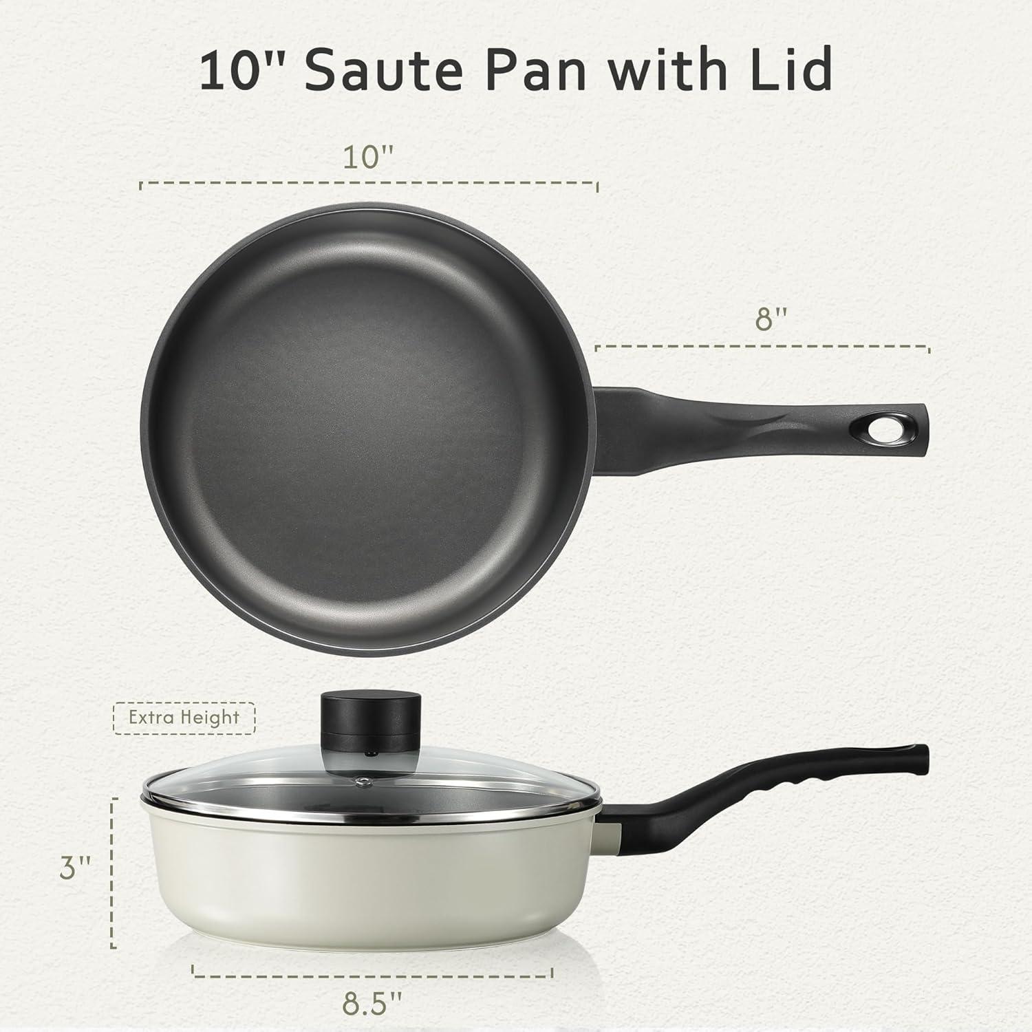 CAROTE 10 INCH Nonstick Frying Pans with Lid Deep Skillet Saute Pan with Lid Healthy Non-Toxic Pan Compatible with All Stovetops