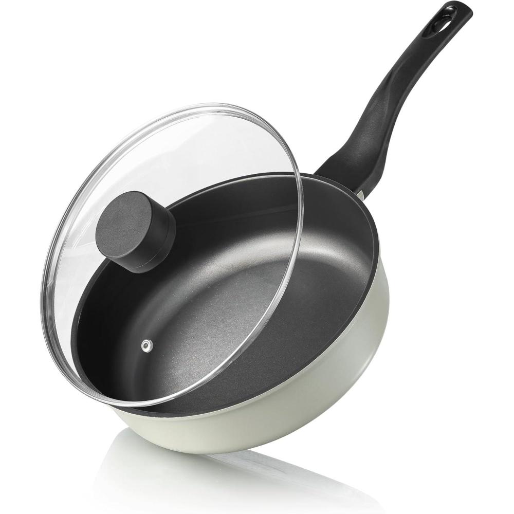 CAROTE Ceramic Nonstick Frying Pan Skillet with Lid, 10″ Deep Frying Pan, 4 QT Saute Pan wilt Lid, Non Stick Chef’s Pan, Non-toxic Healthy, PFOA/PFAS Free, Induction-Compatible, Taupe