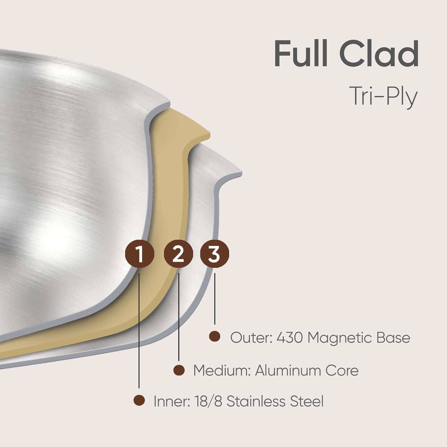 【Versatile for All Stovetops】The Carote stainless steel deep frying pan is compatible with all stovetop types, including gas, induction, ceramic, and electric, and can be used for frying, stir-frying, steaming, baking, and grilling.