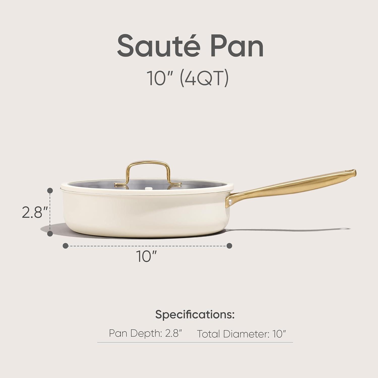 CAROTE Ceramic Nonstick Frying Pan Skillet with Lid, 10″ Deep Frying Pan, 4 QT Saute Pan wilt Lid, Non Stick Chef’s Pan, Non-toxic Healthy, PFOA/PFAS Free, Induction-Compatible, Taupe