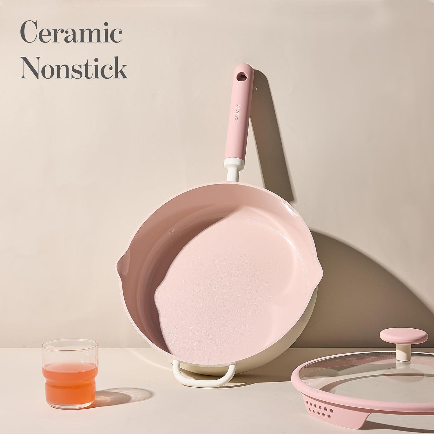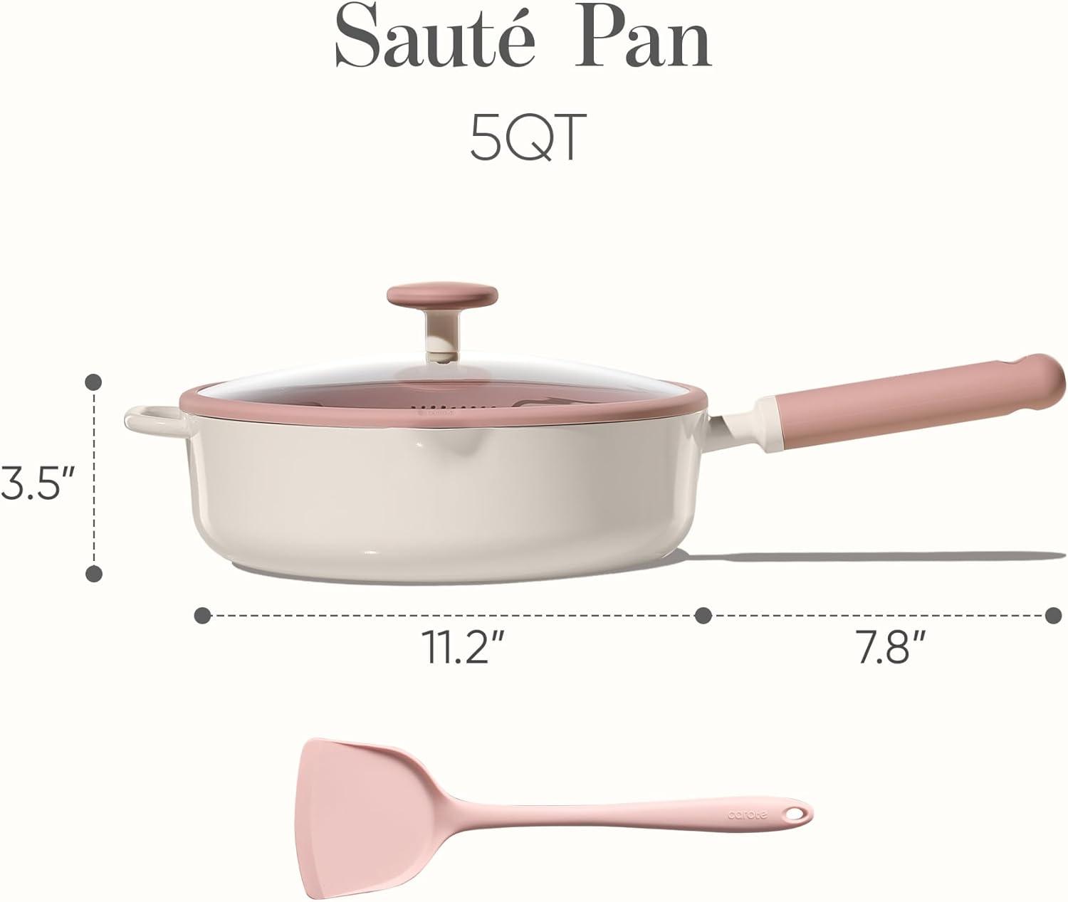 【Healthy & Non-Stick】Our Ceramic Saute Pan with lid features a natural ceramic coating, free from harmful chemicals such as PFOA, PFAS, PTFE, lead, and cadmium, making it healthy and non-toxic. Enjoy healthy, low-fat meals with minimal oil required.