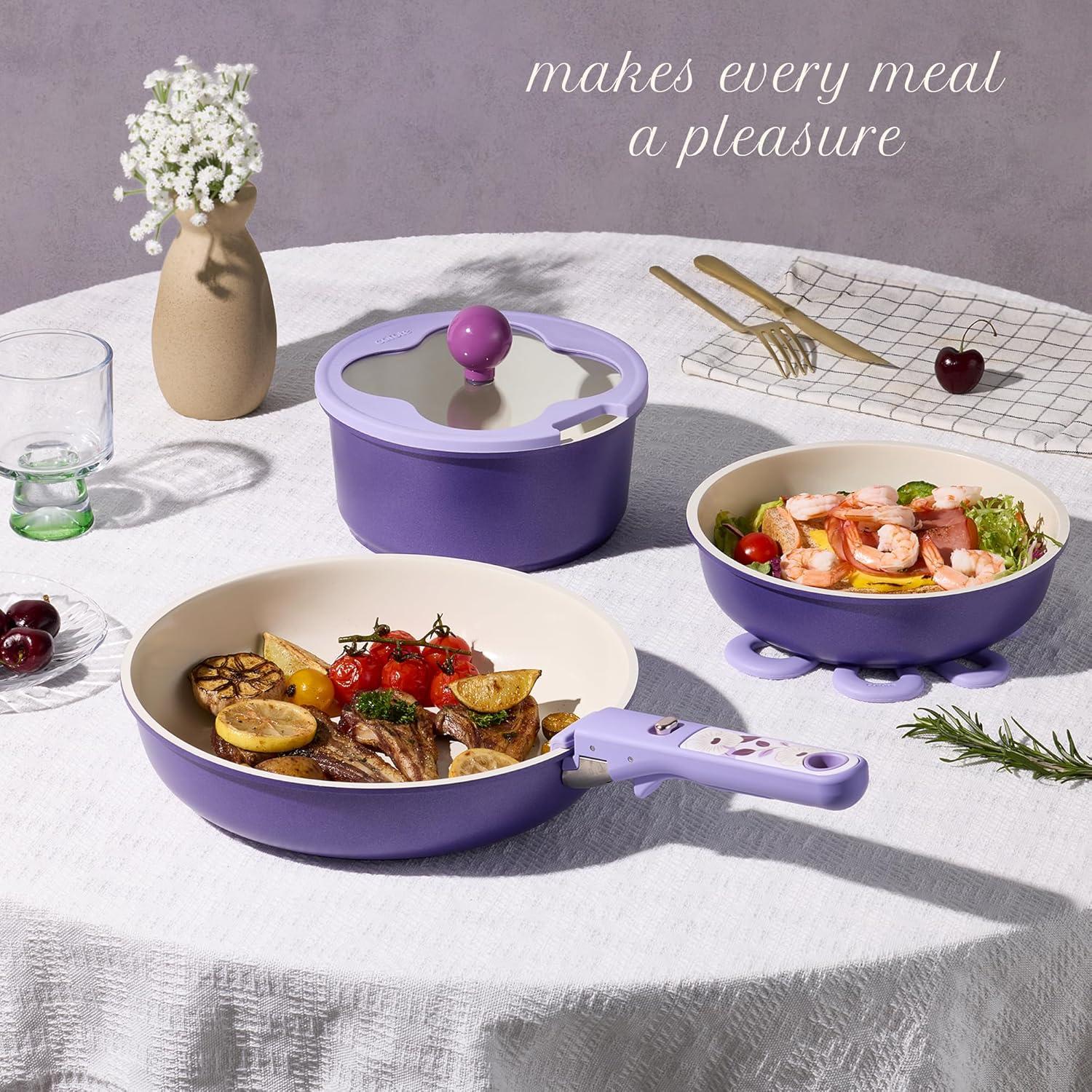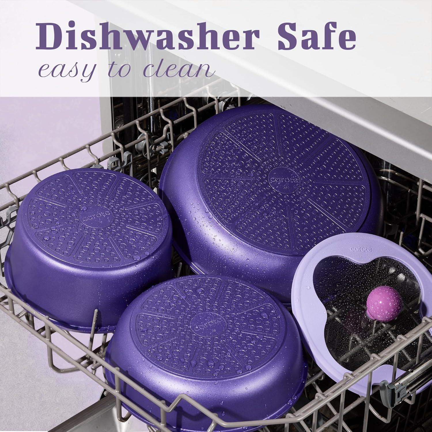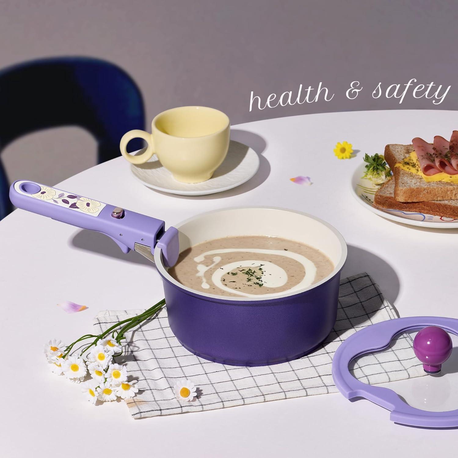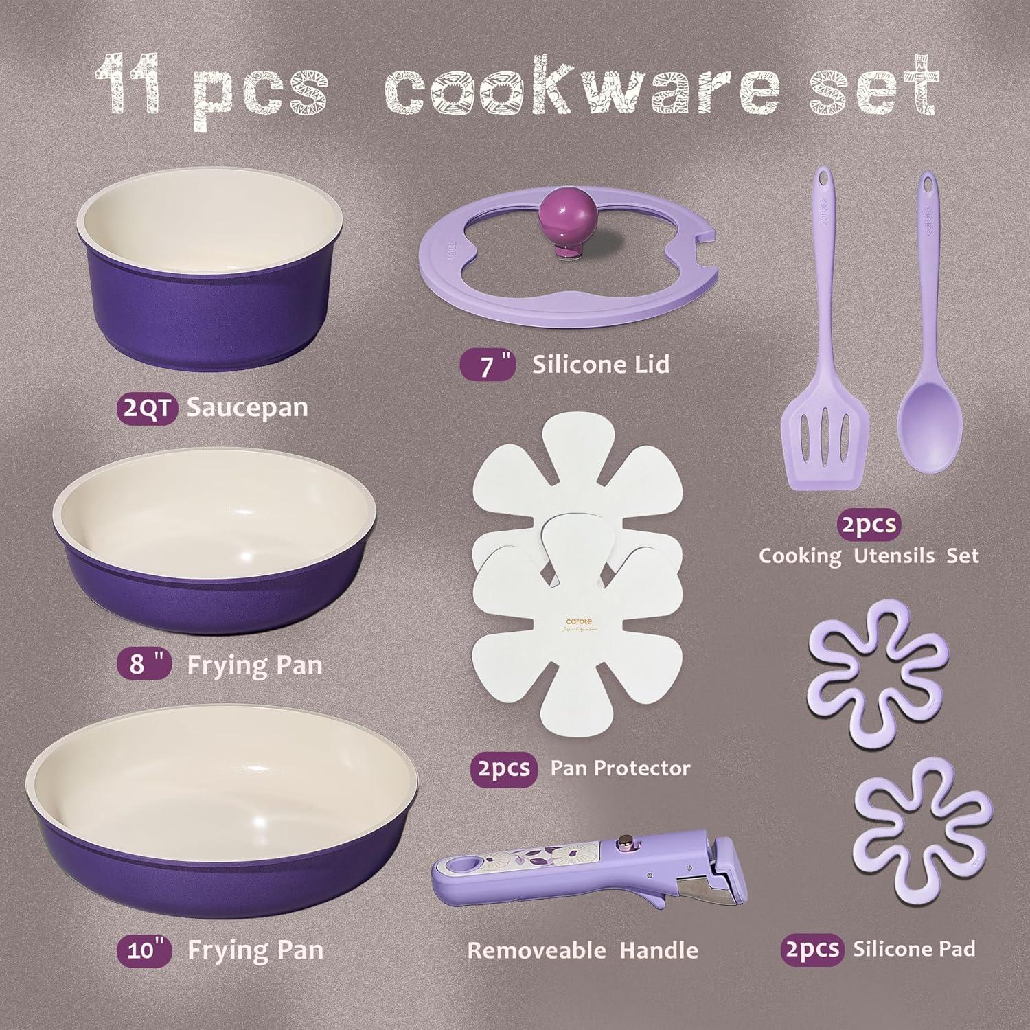 CAROTE 11pcs Ceramic Cookware Set, Pots and Pans Set Non stick, Induction Kitchen Cookware with Removable Handle, RV Dishwasher & Oven Safe, RV/Camping Cookware, PFOA Free, Purple(Purple)