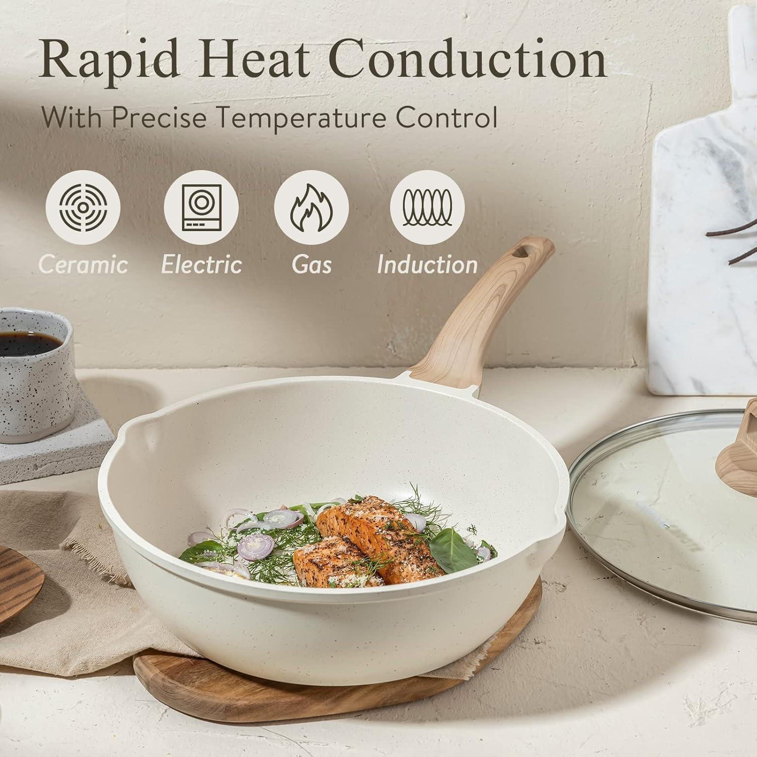 【Superior Nonstick Performance】 – Carote non stick frying pan with lid is made with natural granite materials, providing superior nonstick performance with 100% PFOA-free and non-toxic properties. Enjoy healthier cooking with less oil intake. Advanced technology ensures a long-lasting and naturally nonstick surface that effortlessly releases food.