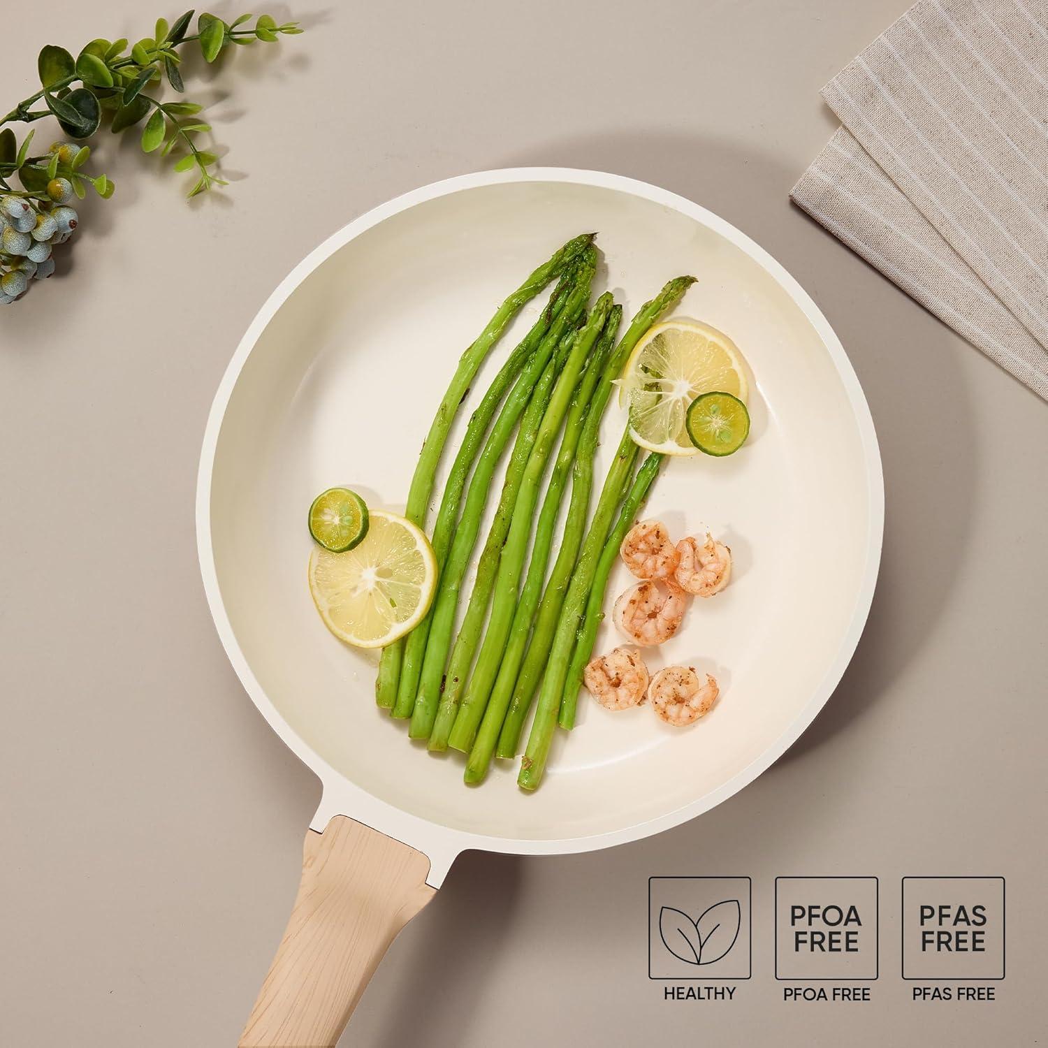 CAROTE 14 Pcs Pots and Pans Set Nonstick,Cookware Set Kitchen Cooking Set with Utensil and Pan Protectors(Cream White)