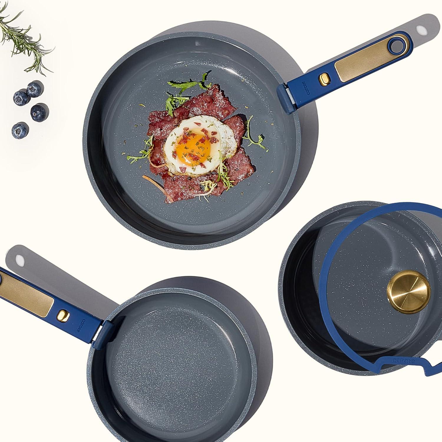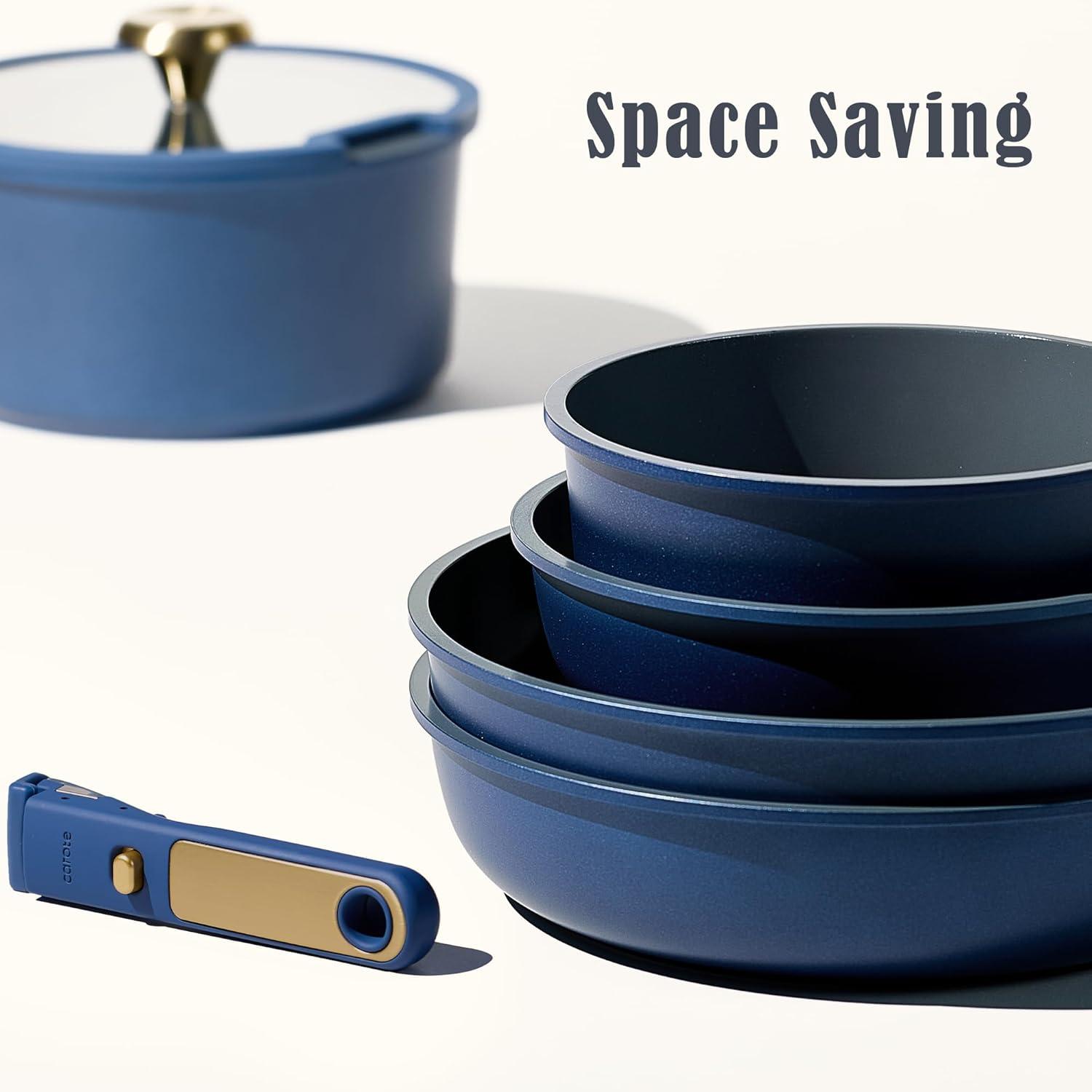 imageCAROTE 15Pcs Ceramic Cookware Set Pots and Pans Set Non stick Kitchen Cooking Set with Detachable Handle Non Toxic Induction Cookware DishwasherOven Safe PFAS Free BlackampGoldBlue