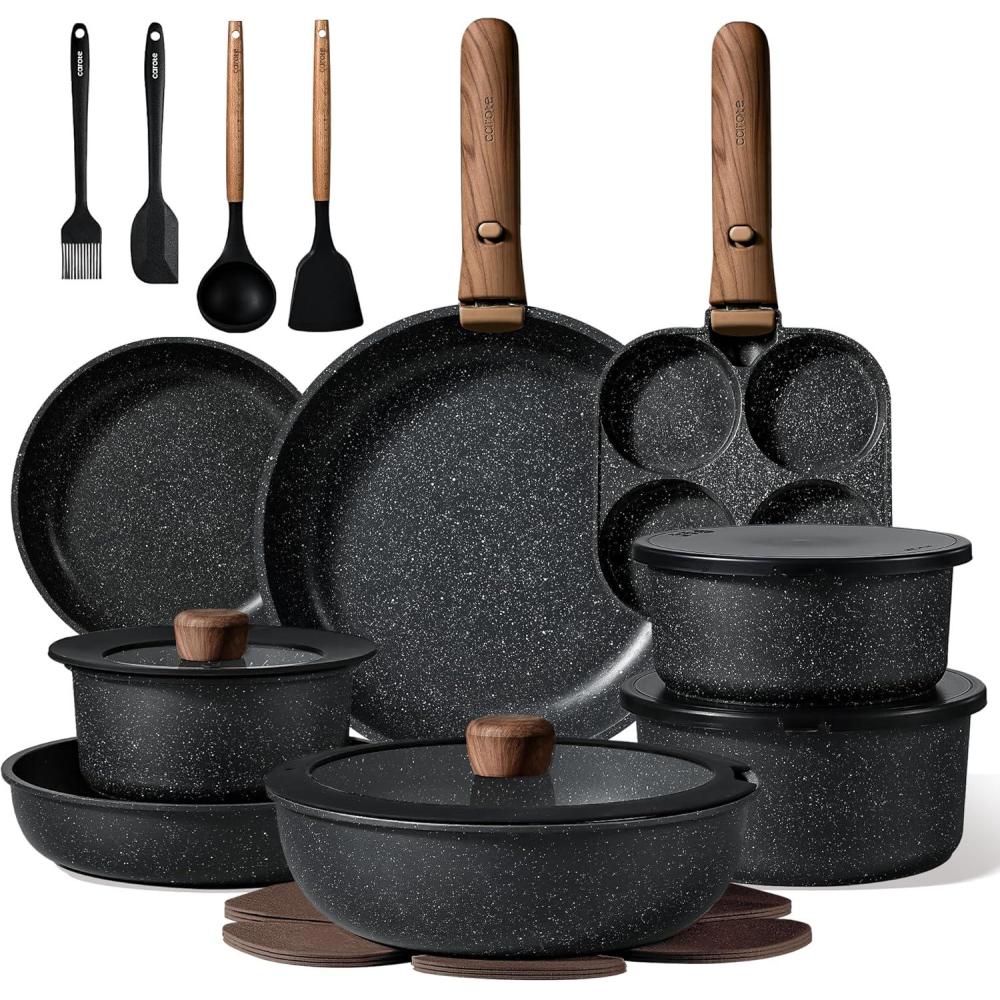 Be the first to review “CAROTE 17pcs Pots and Pans Non Stick, Cookware Sets Detachable Handle, Induction Kitchen Pots and Pans,NonStick Cooking Set, Oven/Dishwasher/Fridge Safe, Space Saving(25 Piece)”