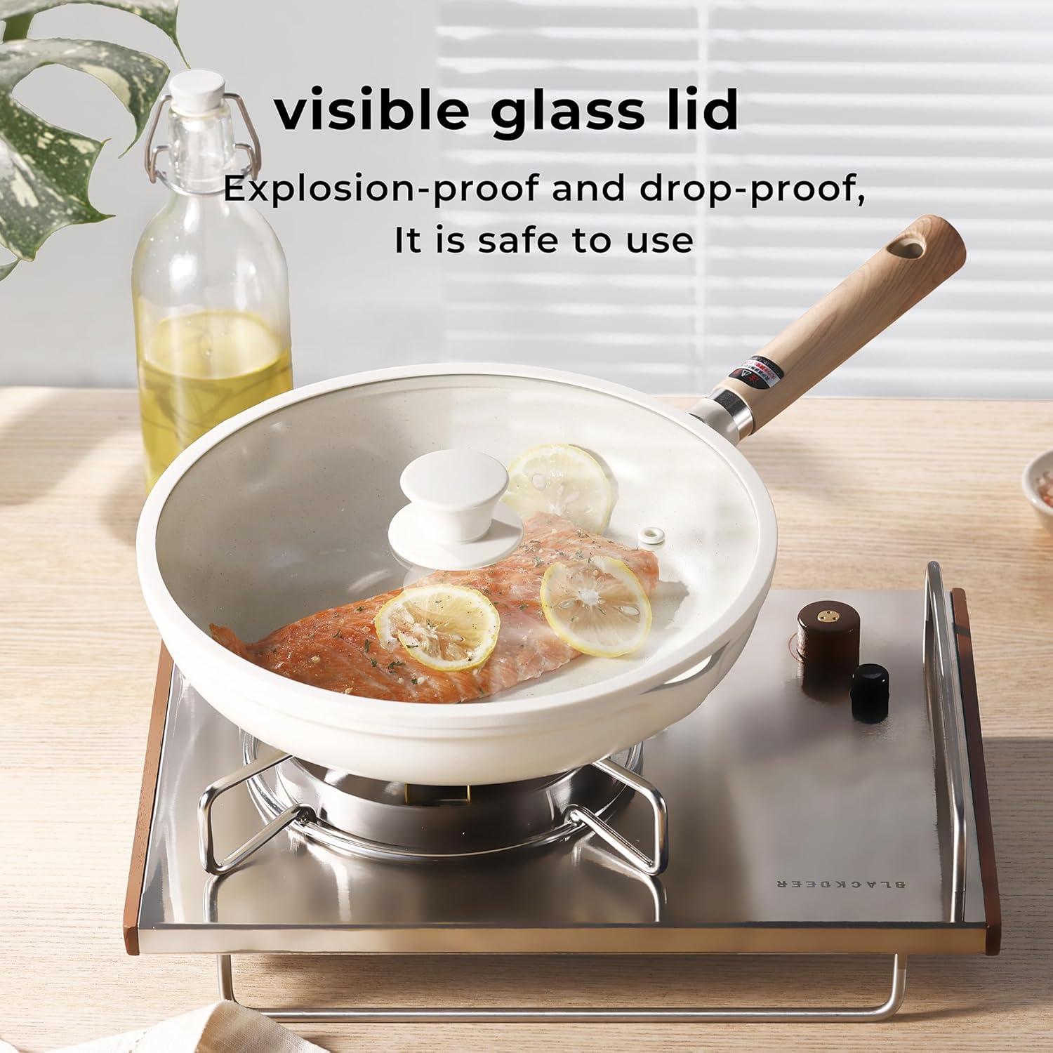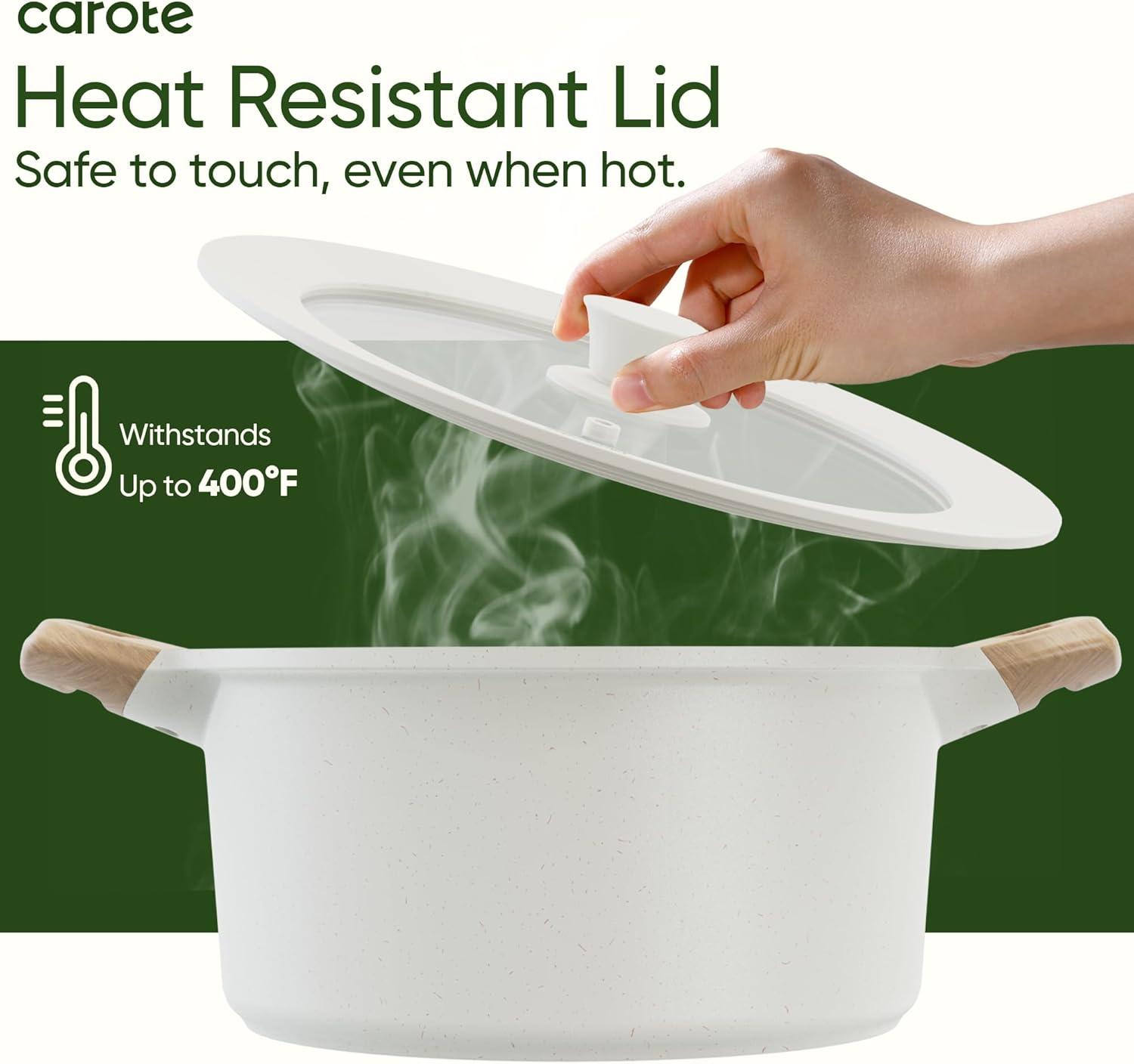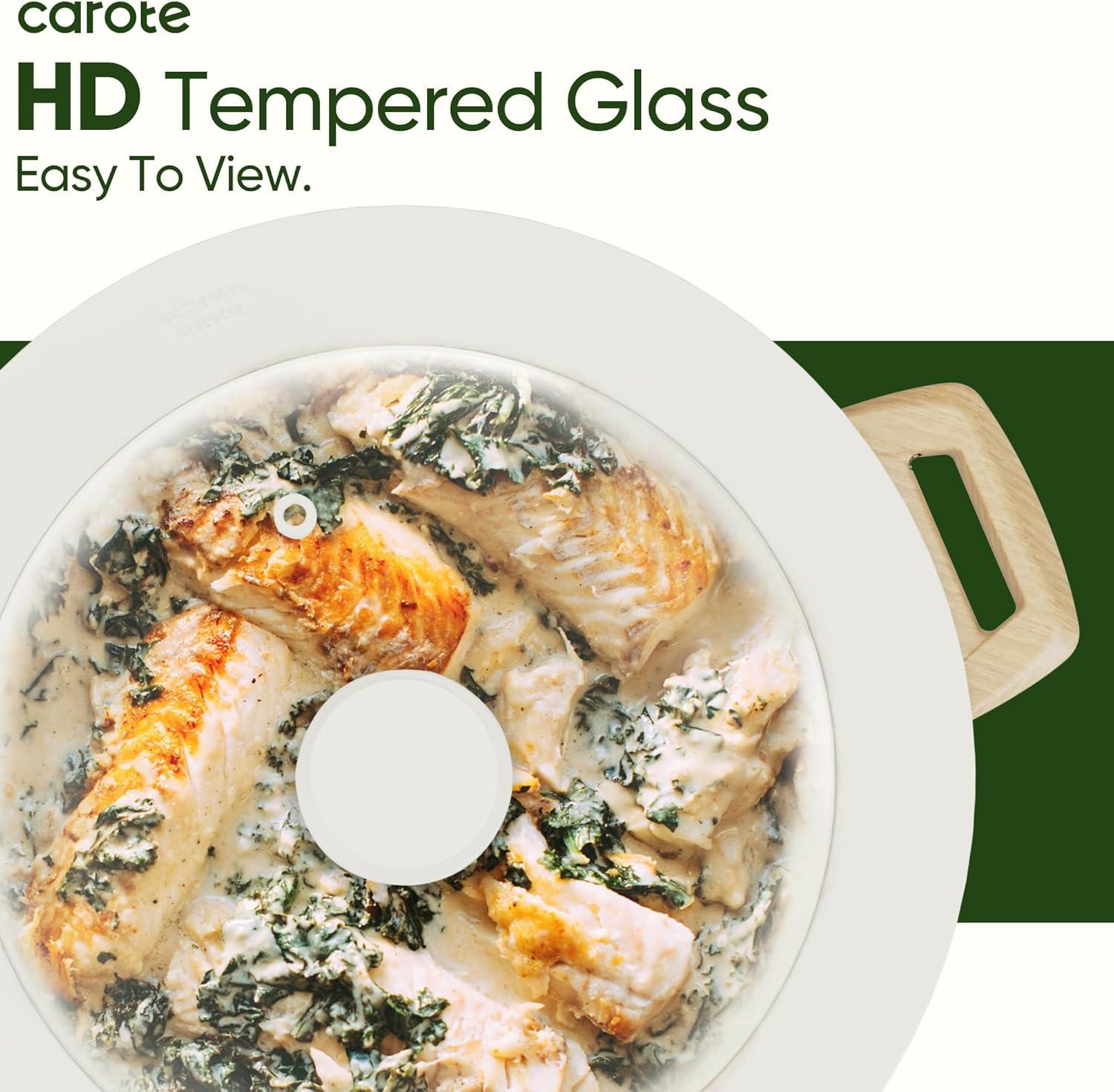 【Clear View, Steam Vent & Cool-Touch Handle】Monitor your cooking progress through the transparent glass without lifting the lid. The steam vent releases excess pressure and moisture to prevent boil-overs. The heat-resistant knob ensures a safe and comfortable grip.