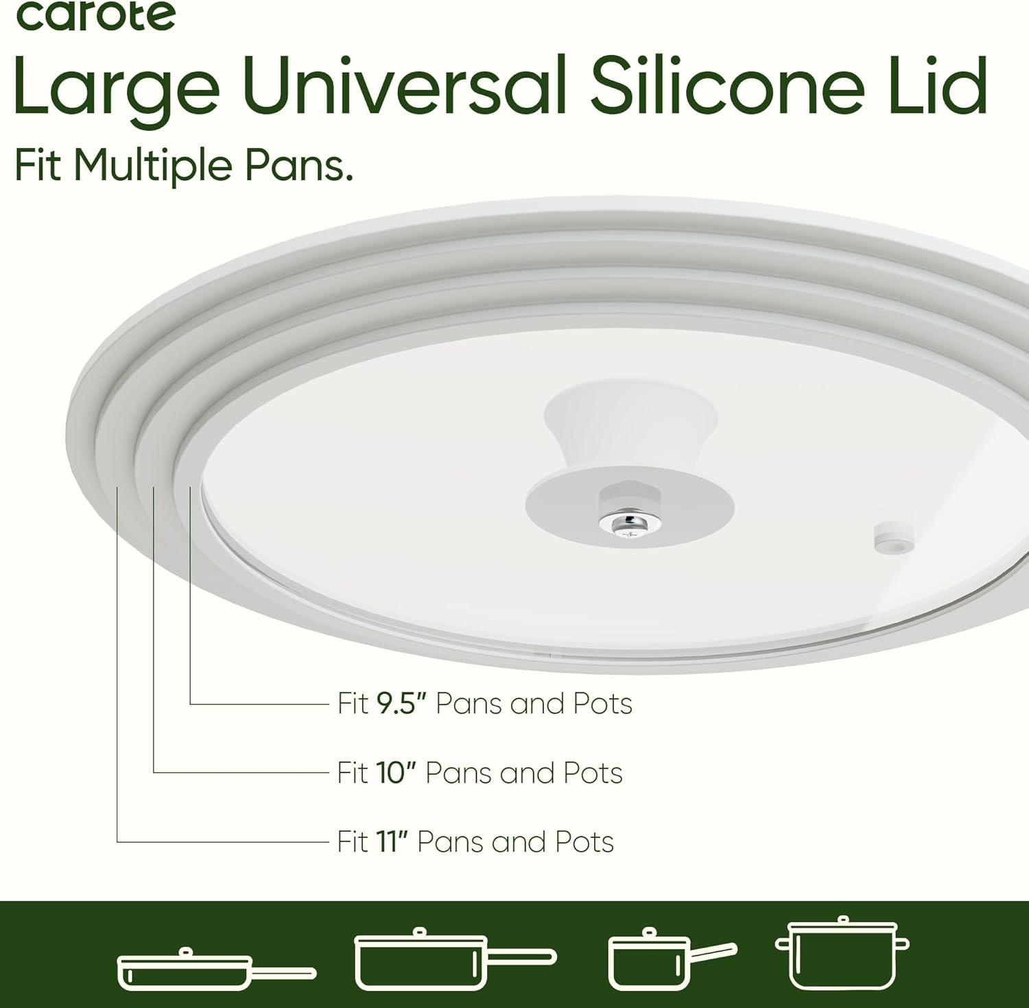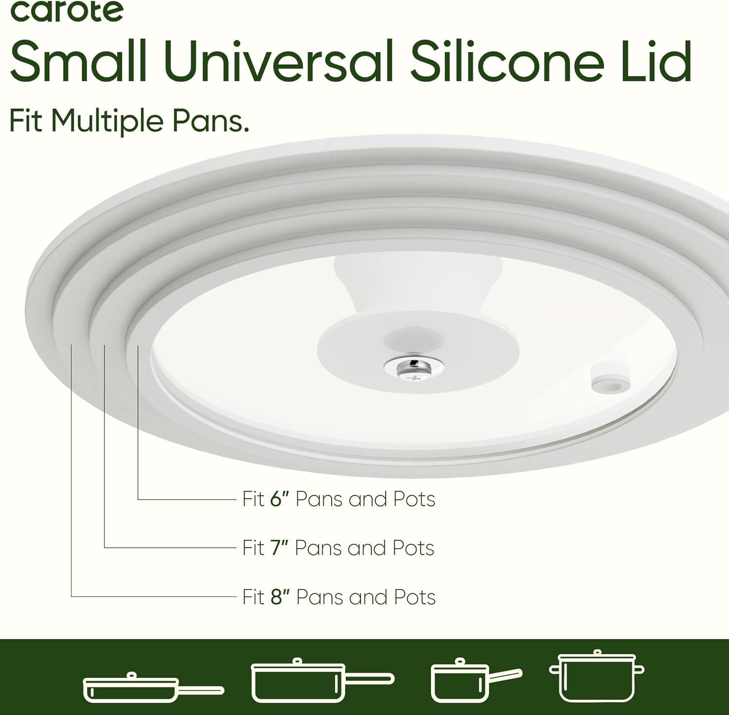 【Versatile Fit & Eliminates Lid Chaos】Carote silicone lid set includes 2 universal silicone covers (Small: fits 6″, 7″, 8″; Large: fits 9.5″, 10″, 11″). Effortlessly adapts to both detachable handle cookware sets and standard handled pots & pans – including frying pans, saute pans, saucepans, and casseroles of corresponding sizes – thanks to its smooth rim design. One lid fits multiple pots, banishing kitchen clutter for good.