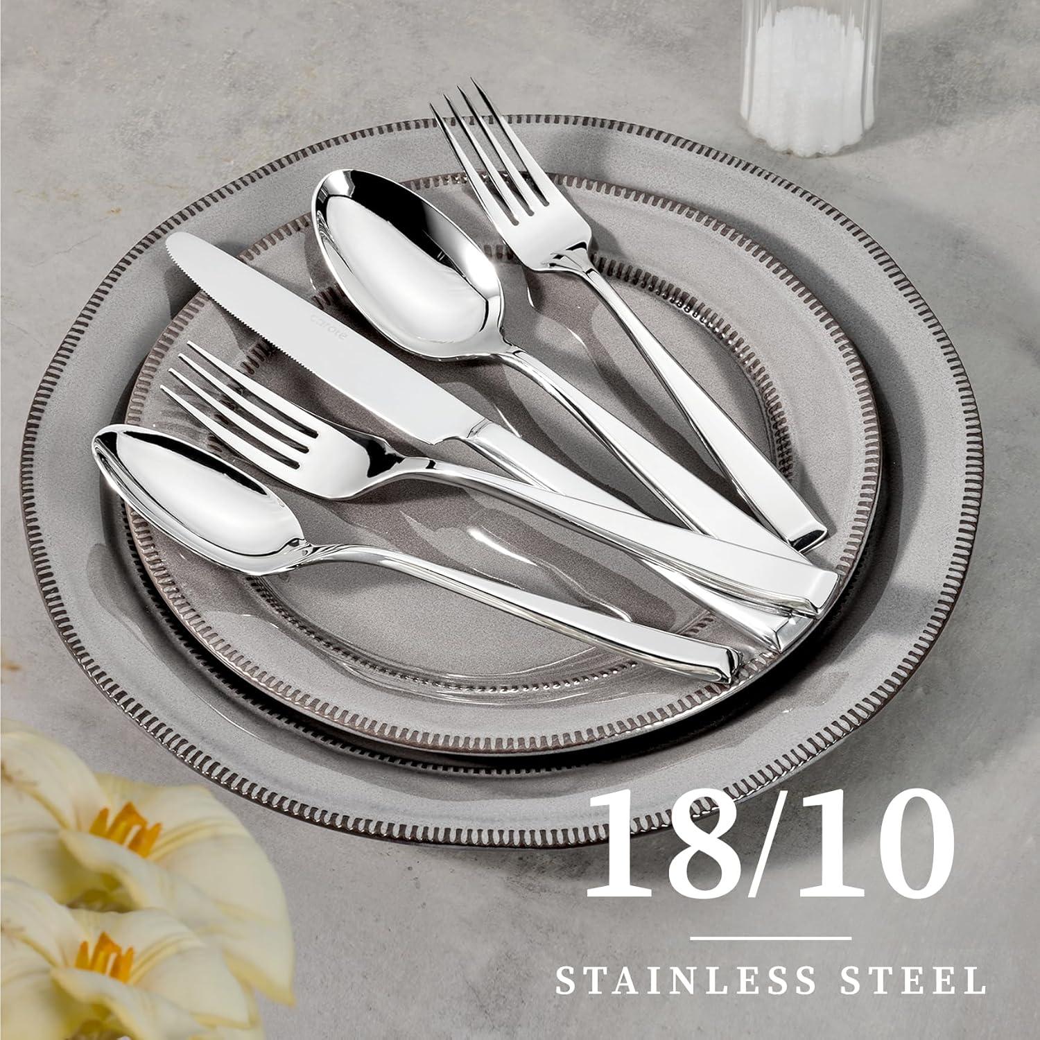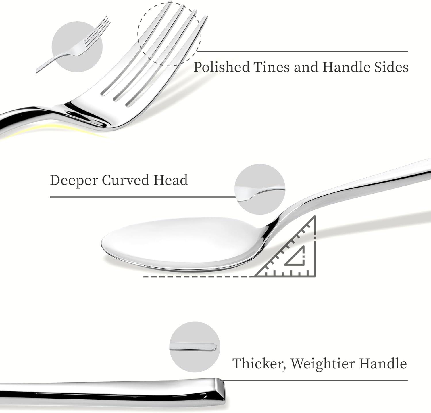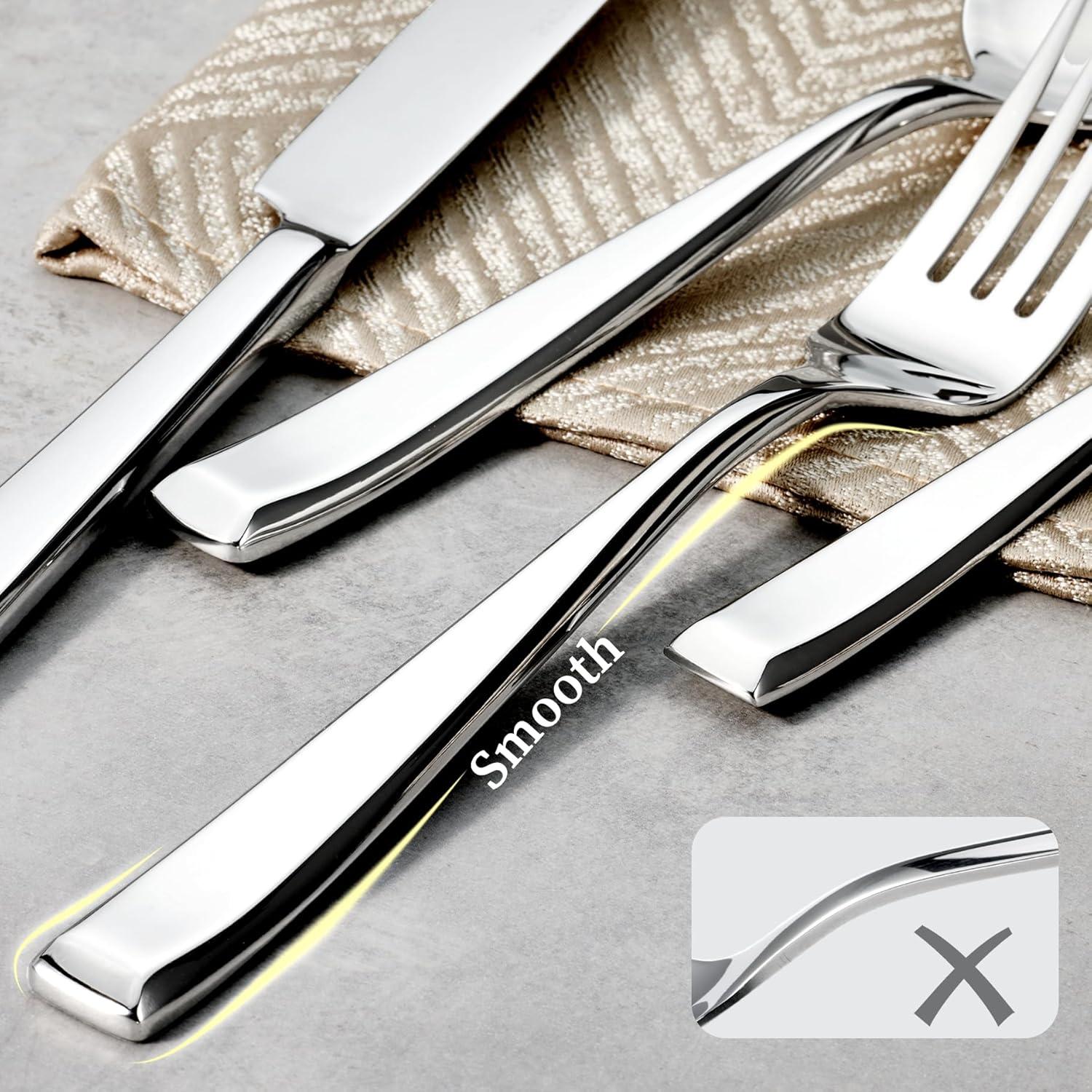 Premium 18/10 Stainless Steel: Crafted from high-quality 18/10 stainless steel, our stainless steel silverware set is built to last—rust-proof, corrosion resistant, and exceptionally durable. With substantial weight and thickness in each handle, it delivers a premium, solid feel that elevates everyday dining, making it a reliable utensils set for any household.