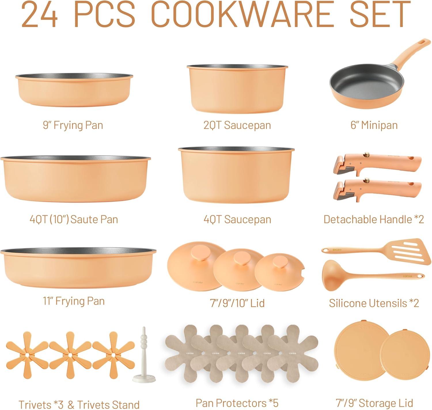 Discover the latest CAROTE 24pcs Pots and Pans Set Non Stick, Nonstick Cookware Set, Oven/Dishwasher/Fridge Safe Pots and Pans, RV Safe Cookware, Induction Kitchen Gift Set Detachable Handle, Peach(Peach) from and take advantage of our limited-time introductory offer.