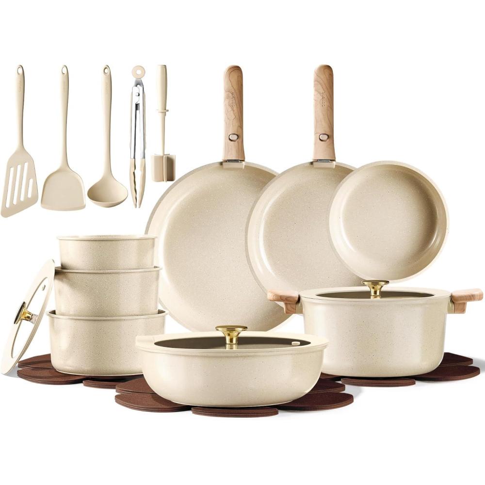 Cook Healthier:Our cookware sets are free of PFOA, PFOS, and the other harmful chemicals. You can enjoy your cooking on carote cookware safely & easily