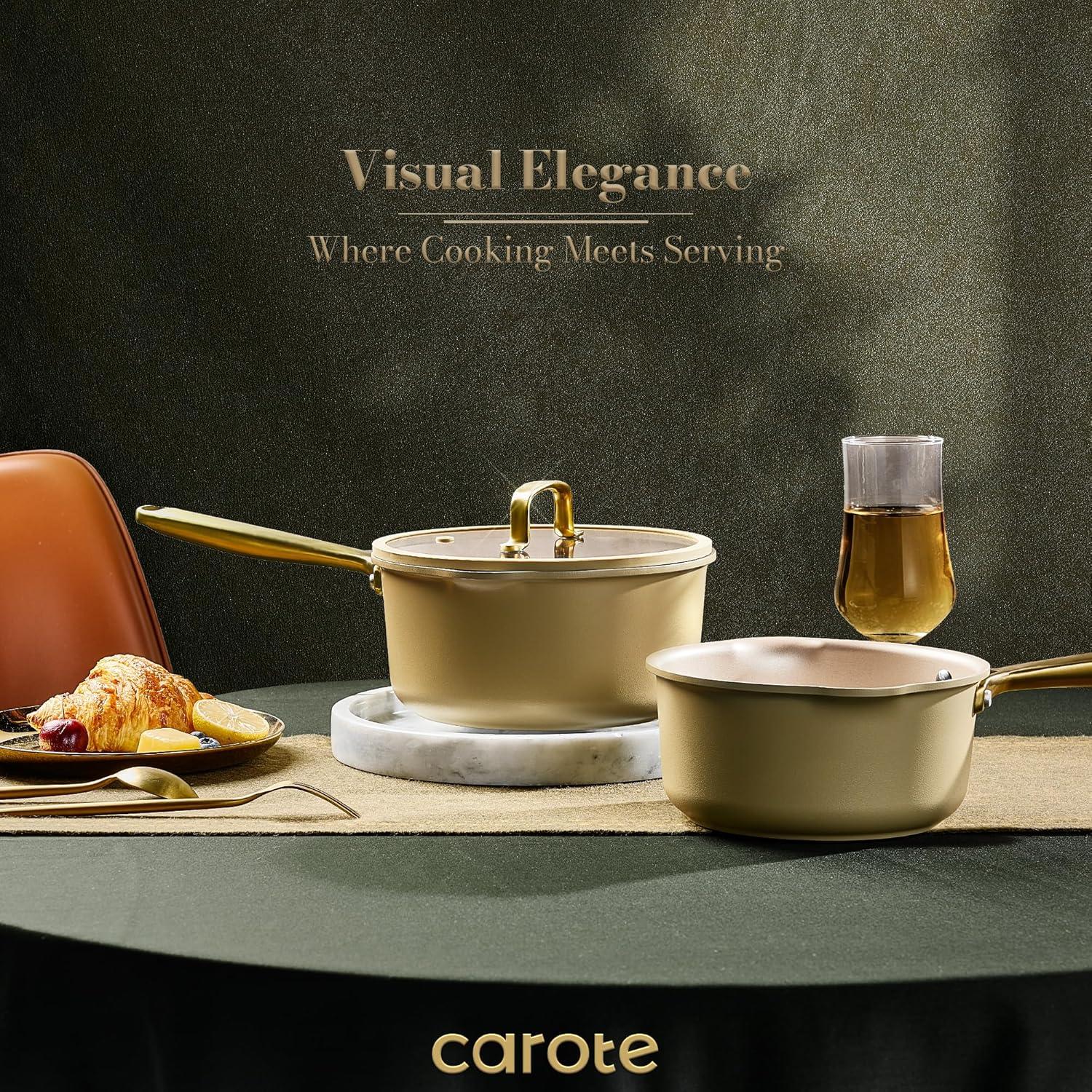 Non-Stick and Easy Care: CAROTE 2.1qt & 2.8qt saucepan set features a non-toxic, nonstick coating, which ensures excellent food release for healthier cooking with less oil, and makes cleanup a breeze—food residues wipe away effortlessly
