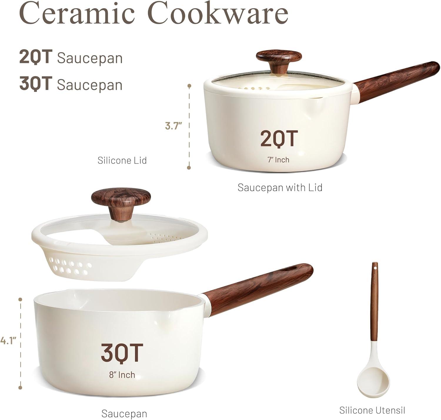 【Healthy and Non-toxic】This small saucepan set features a ceramic coating, free from added PFOA, PTFE, PFOS, lead, and cadmium. It’s designed to give you a healthier cooking experience and complete peace of mind