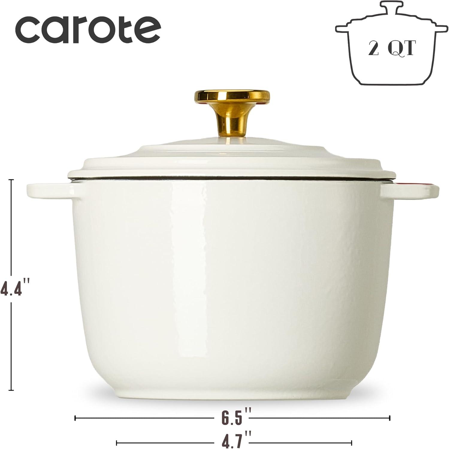 CAROTE 2QT Enameled Cast Iron Rice Pot, Non-Toxic Small Dutch Oven with Lid for Rice Grains, Soup, Sourdough Bread Baking, Braising, Roasting, Dual Handles, All Stovetop Compatible, Oven Safe, White(White)