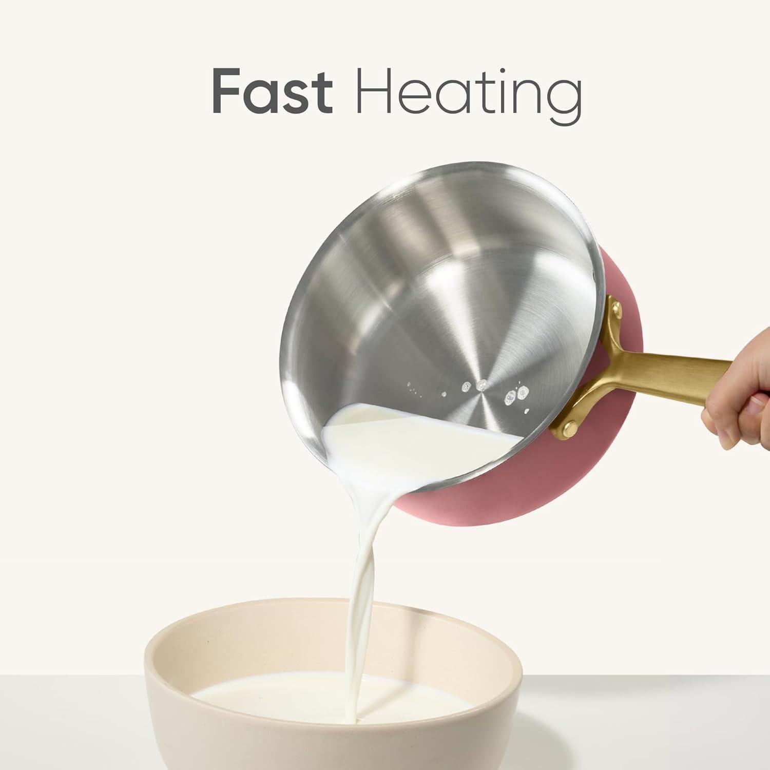 【Effortless Cleaning】The saucepan's mirror-polished, stain-resistant surface prevents food from sticking and is a breeze to clean. For long-lasting performance, we recommend a simple hand wash with warm, soapy water