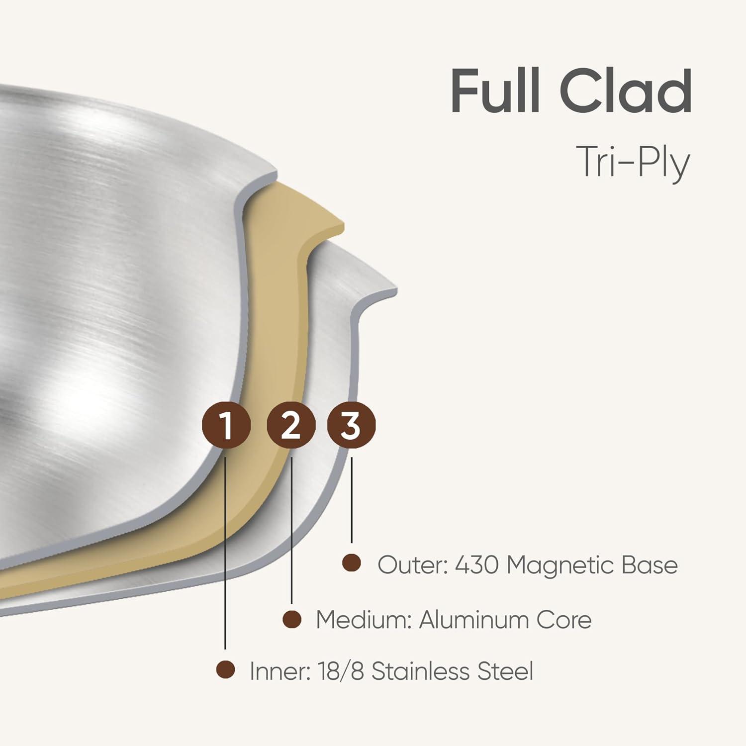 【Longer Lifespan】The fully clad, 3-layer metal construction ensures long-term durability and reliability while providing consistent, even heating—eliminating hot spots and delivering perfectly cooked results