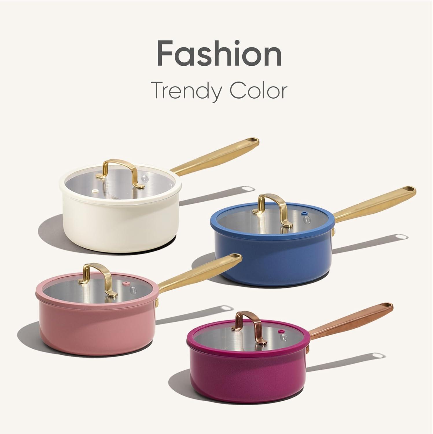 CAROTE 2Qt Stainless Steel Saucepan, Non-Toxic Cookware with Lids,Outer Ceramic Layer,Small Cooking Pot, Even Heating, Fits All Stoves,Oven & Dishwasher Safe, Pink(Purple)