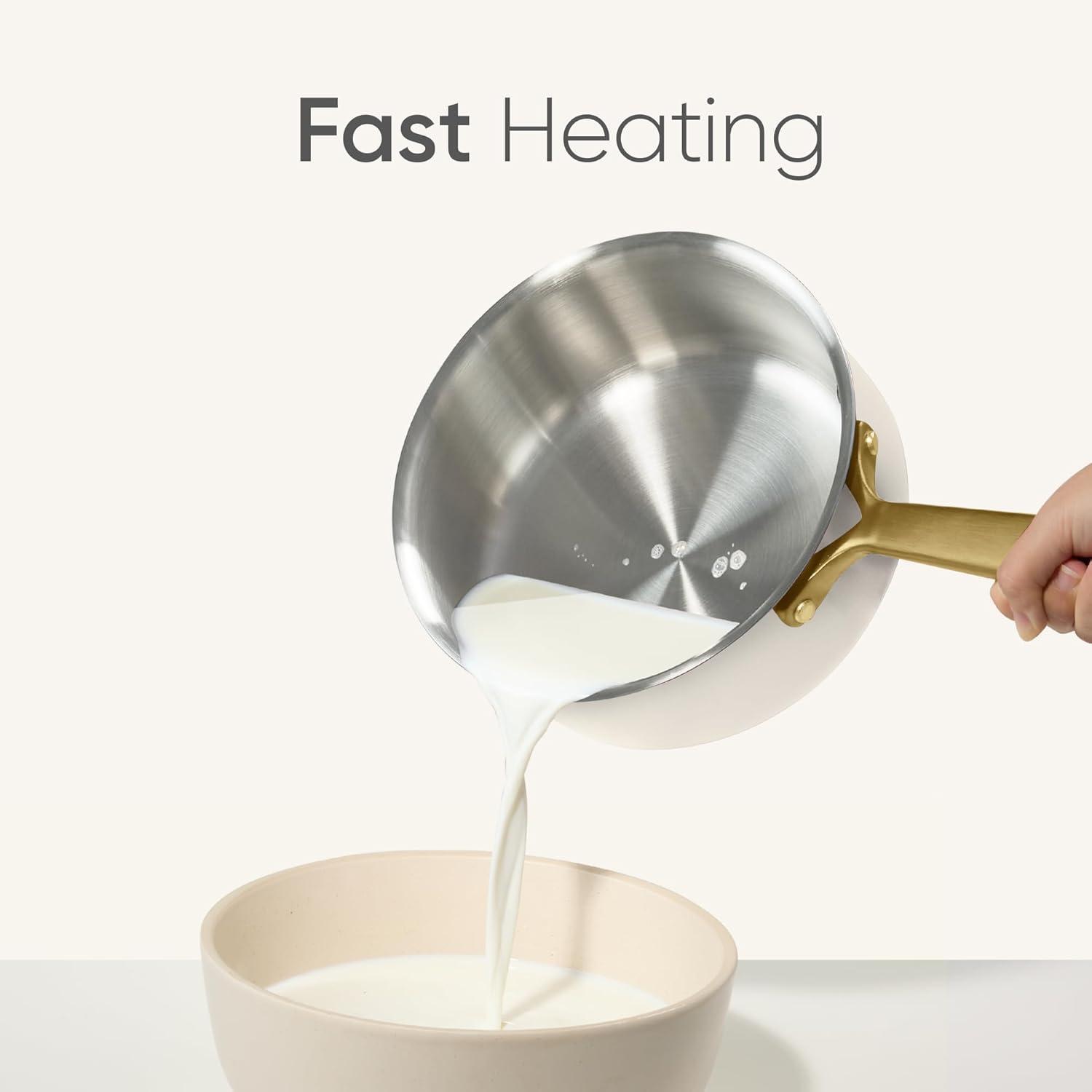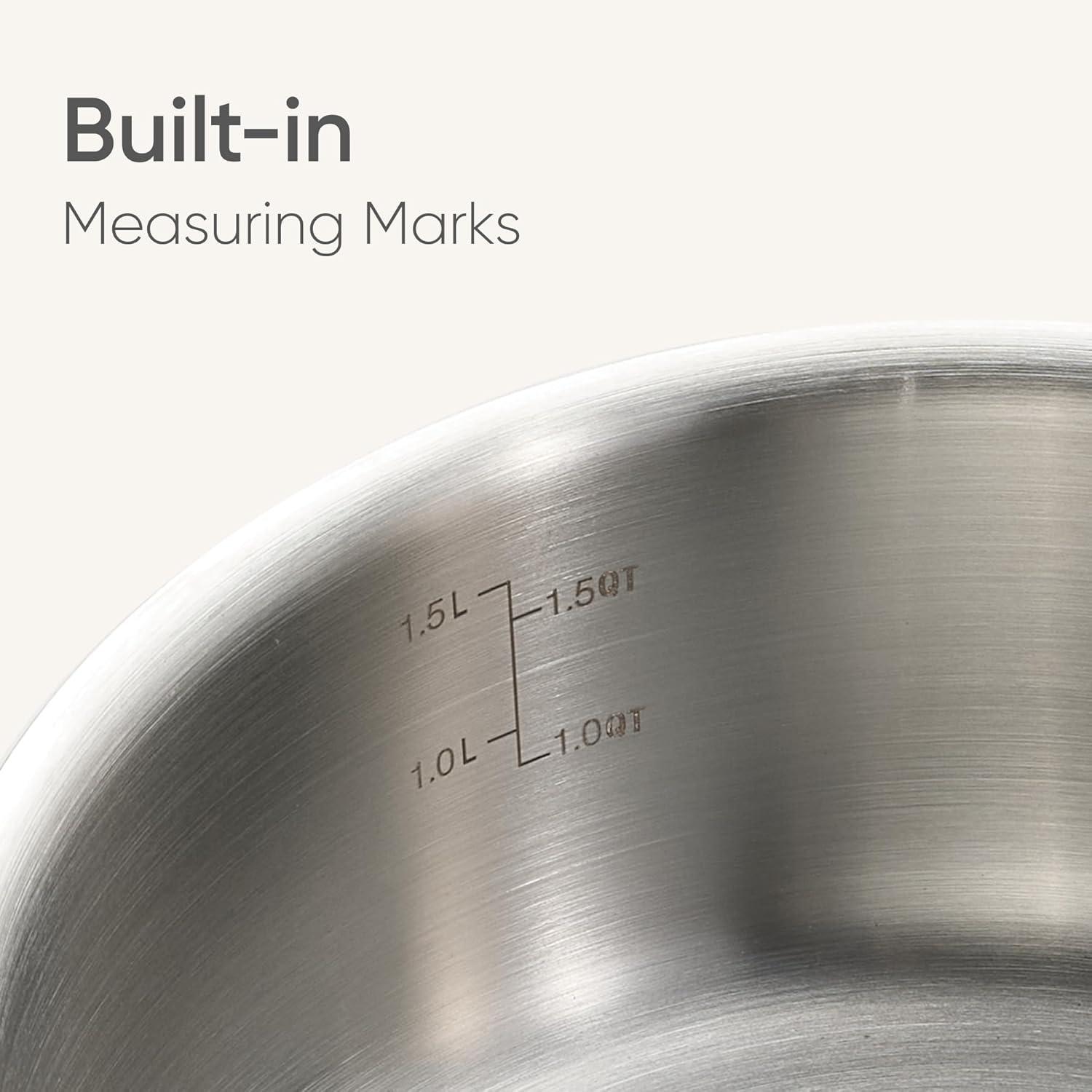 【Effortless Cleaning】The saucepan's mirror-polished, stain-resistant surface prevents food from sticking and is a breeze to clean. For long-lasting performance, we recommend a simple hand wash with warm, soapy water