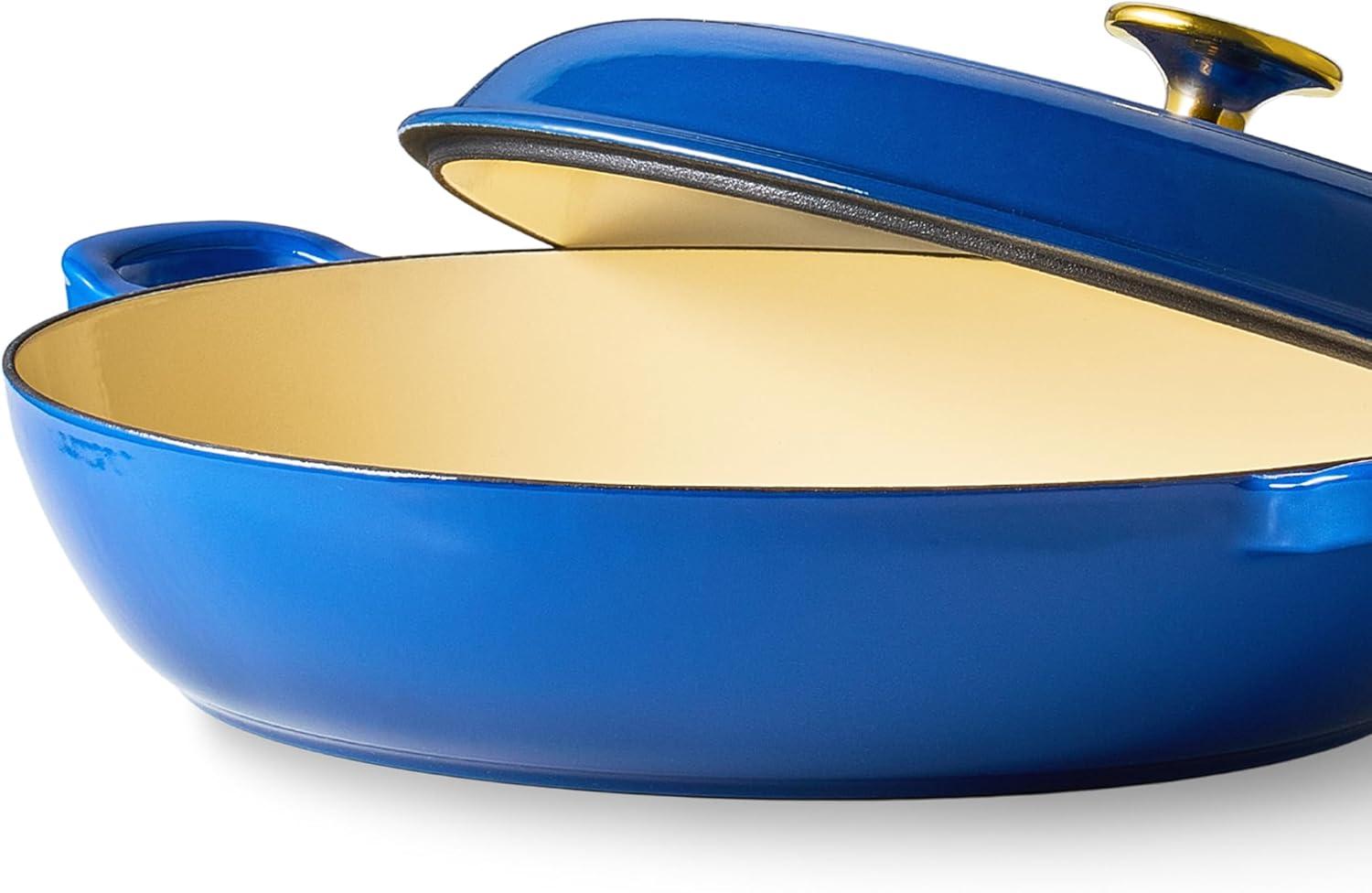 Classic Design: Carote enameled cast iron pot features a porcelain-enameled shell and a spray-painted finish for durability and stylish aesthetics that complement any kitchen. Our shallow braiser pan features sturdy double handles and a matching lid, and its ergonomic design makes it easy to move from stovetop to oven.