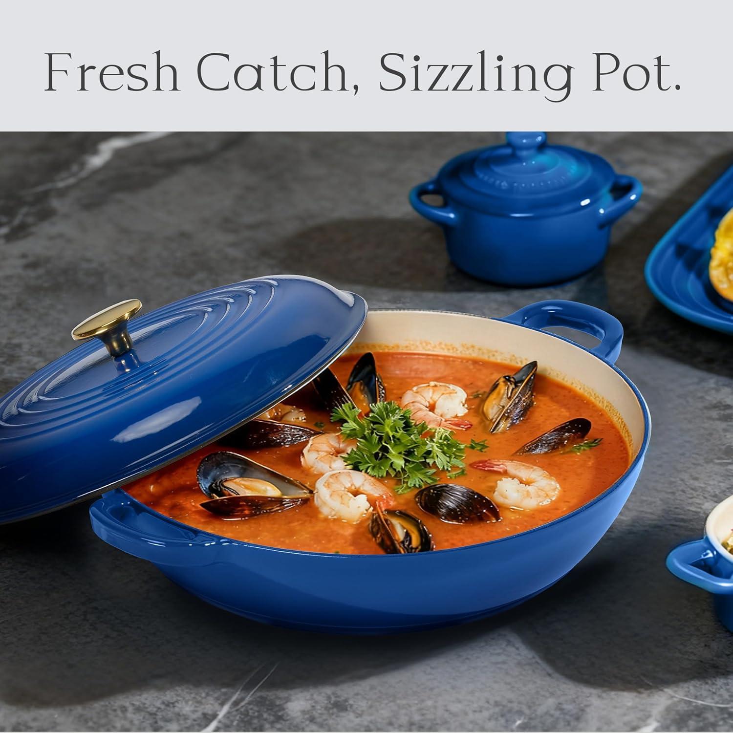 imageCAROTE 35QT Enameled Cast Iron Braiser Pan Shallow Dutch Oven Casserole Skillets NonToxic Cast Iron Pot with Lid for Grilling Searing Baking Dual Handles All Stovetop Compatible RedBlue