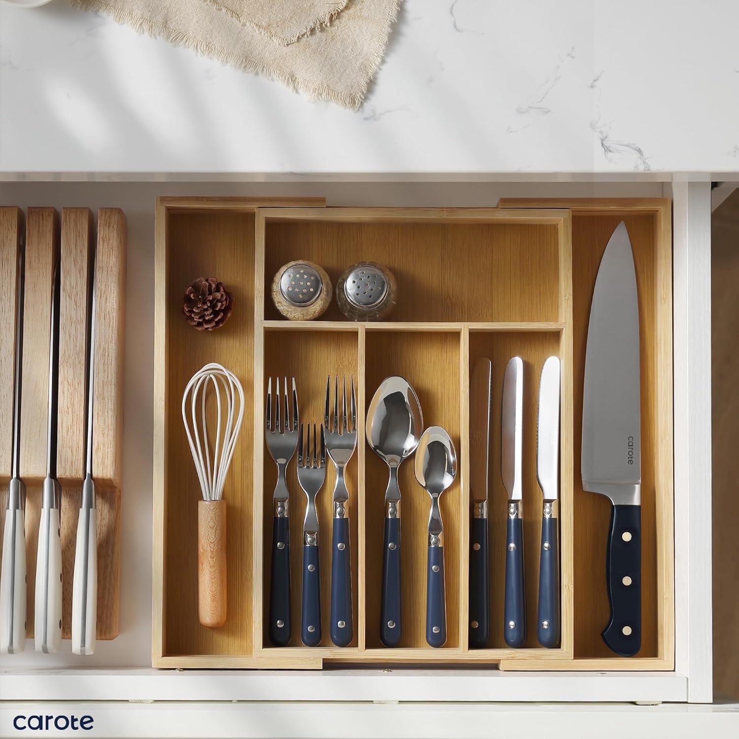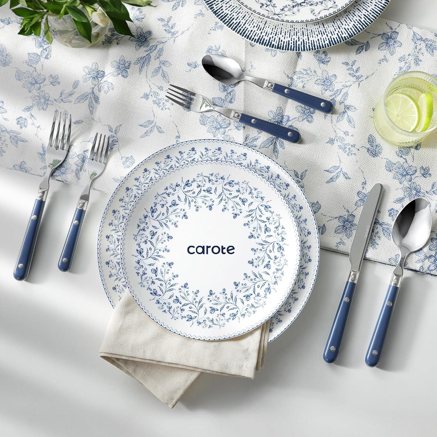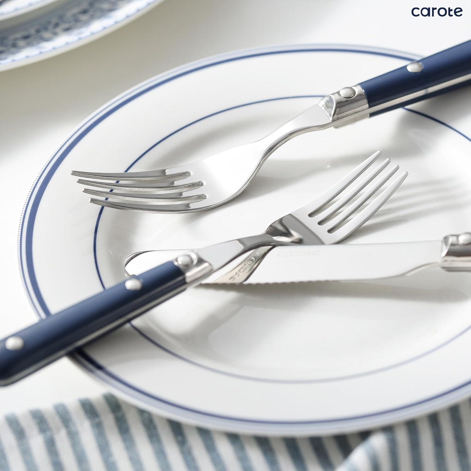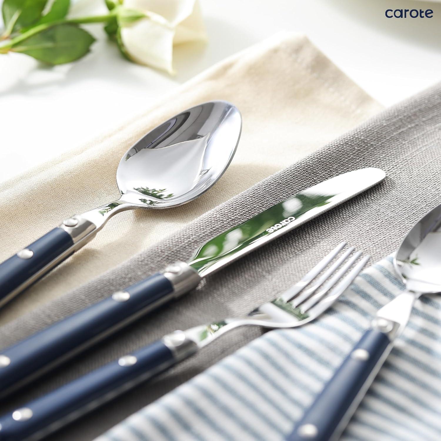 CAROTE 30-Piece Silver set, Stainless Steel Flatware Set with Blue Handles, Triple-Riveted & Full Tang Design, Kitchen Utensils Set, Mirror Polished, Durable, Blue