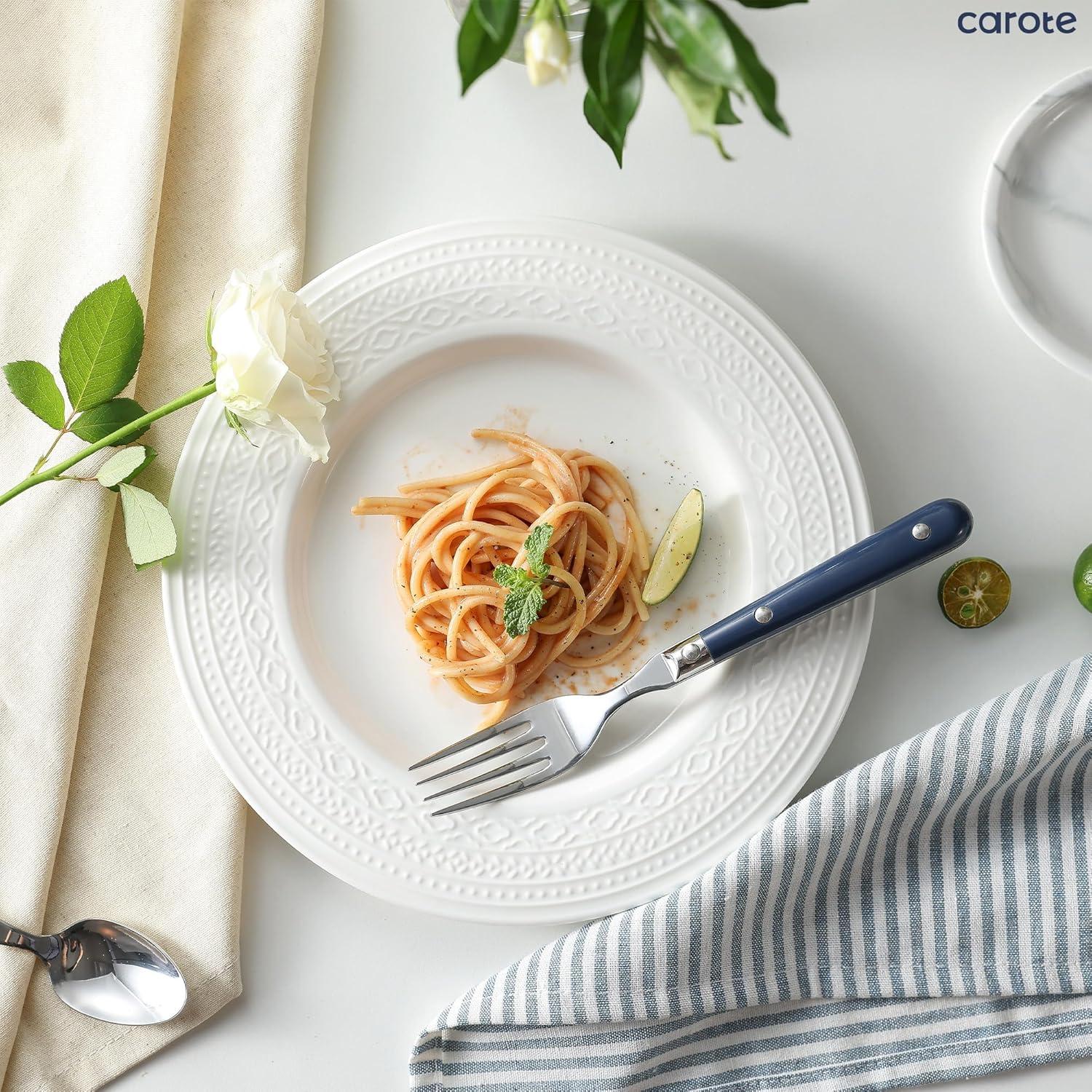 CAROTE 30-Piece Silver set, Stainless Steel Flatware Set with White Handles, Triple-Riveted & Full Tang Design, Kitchen Utensils Set, Mirror Polished, Durable, White