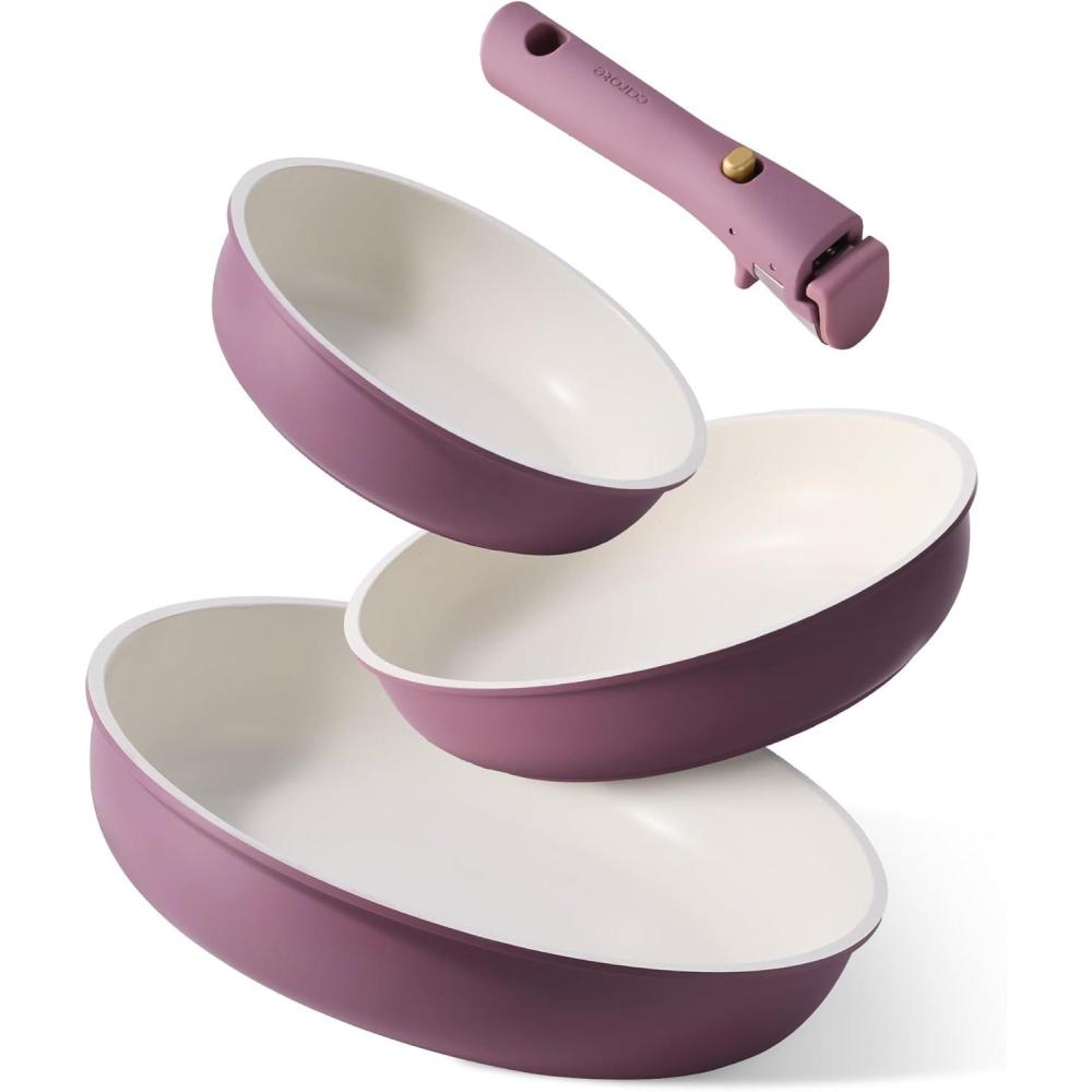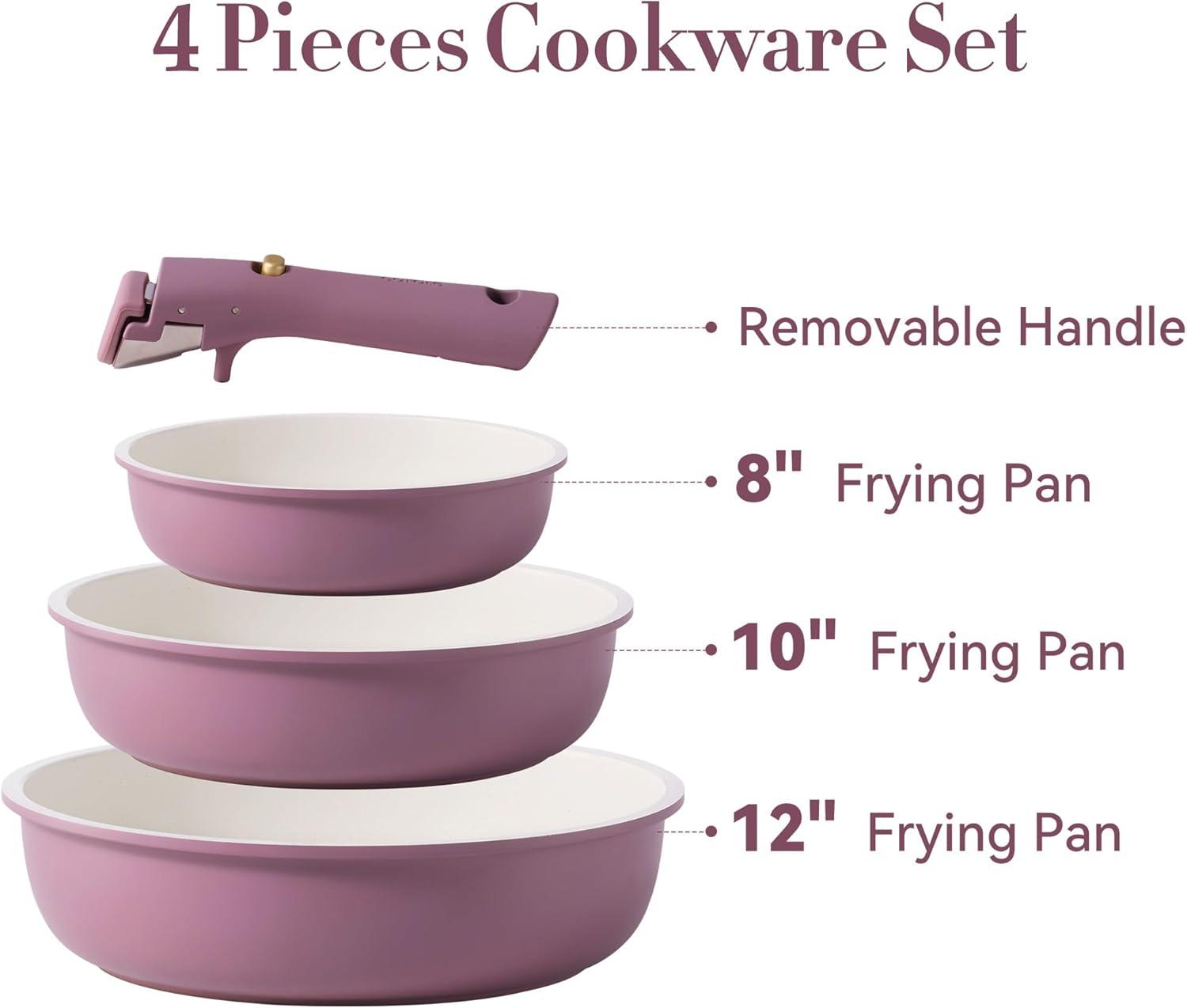 imageCAROTE 4pcs Non Stick Frying Pans 8quot10quot12 Frying Pan Egg Pan Omelet Pans with Detachable Handle Nonstick Cookware PFOA Free Induction Compatible ampamp Oven Safe Dishwasher Safe BluePurple