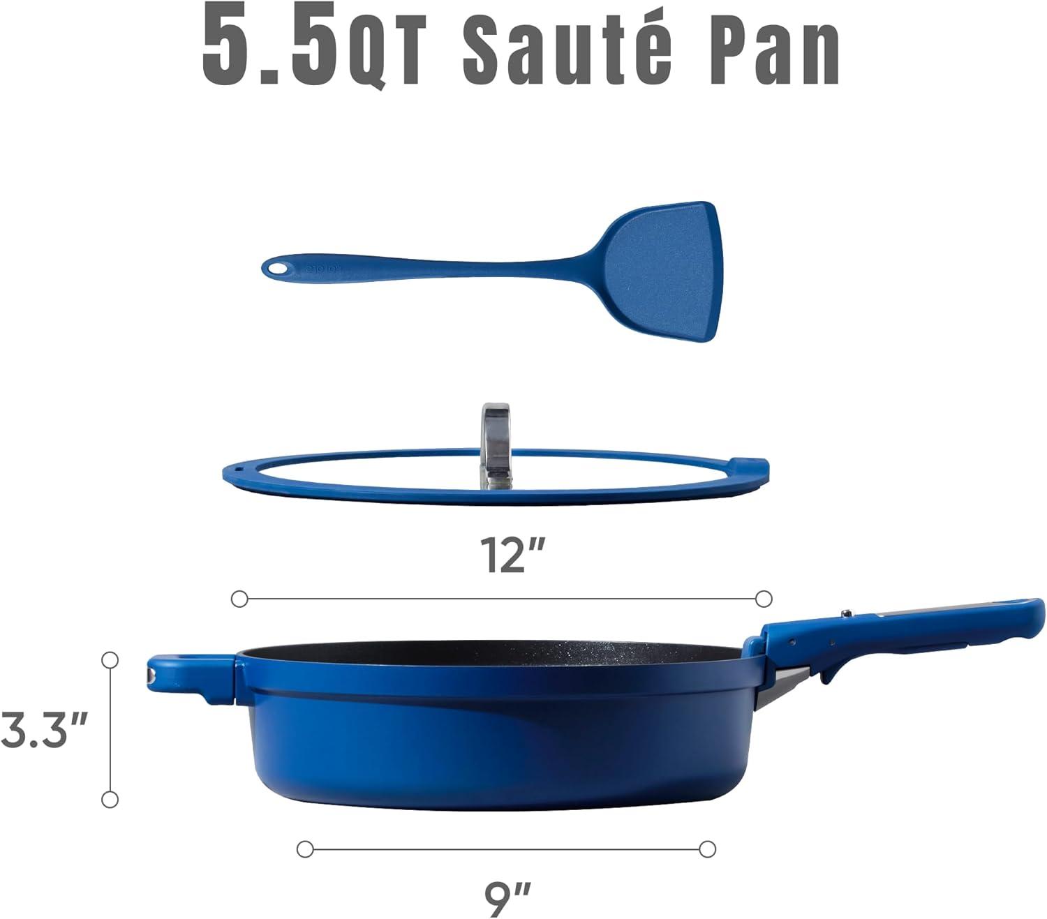 Set Includes: 5.5-qt saute pan with lid, detachable handle and a spatula.