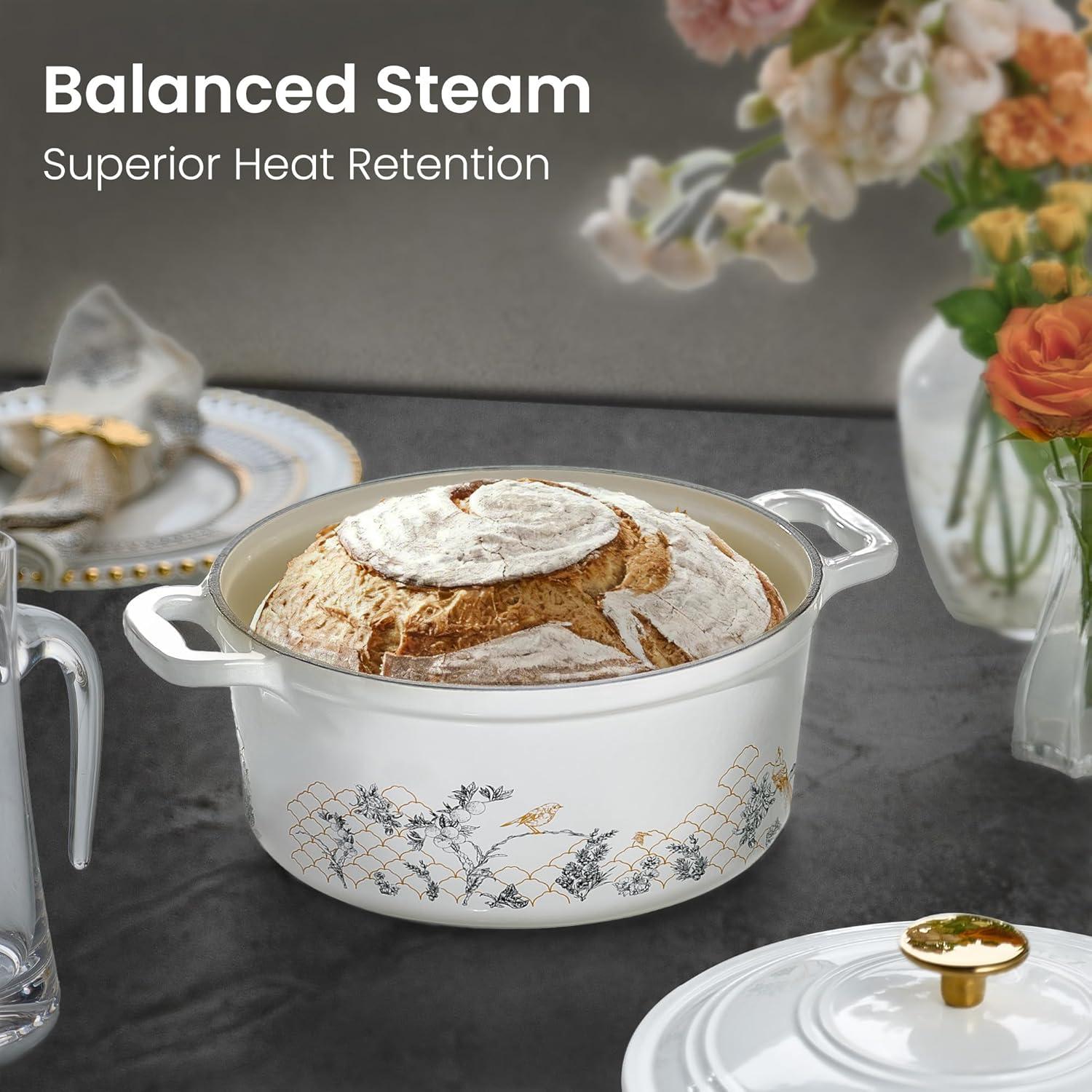 Service & Guarantee: We are committed to the quality of our enameled cast flora iron dutch oven. Each dutch oven undergoes multiple quality checks during production. Please don't hesitate to reach out if any quality problems arise. You'll be guaranteed to get a satisfying solution based on the specific situation.