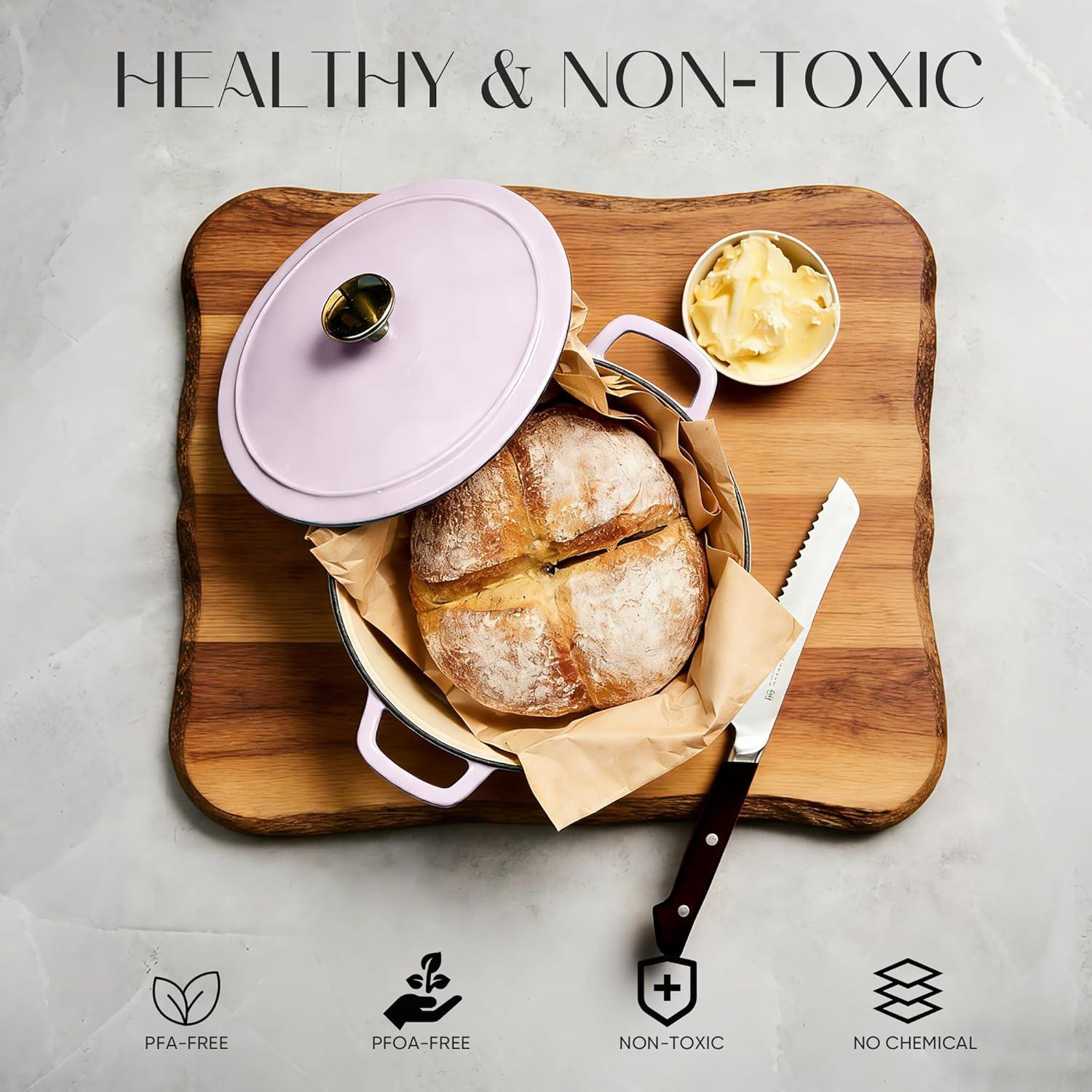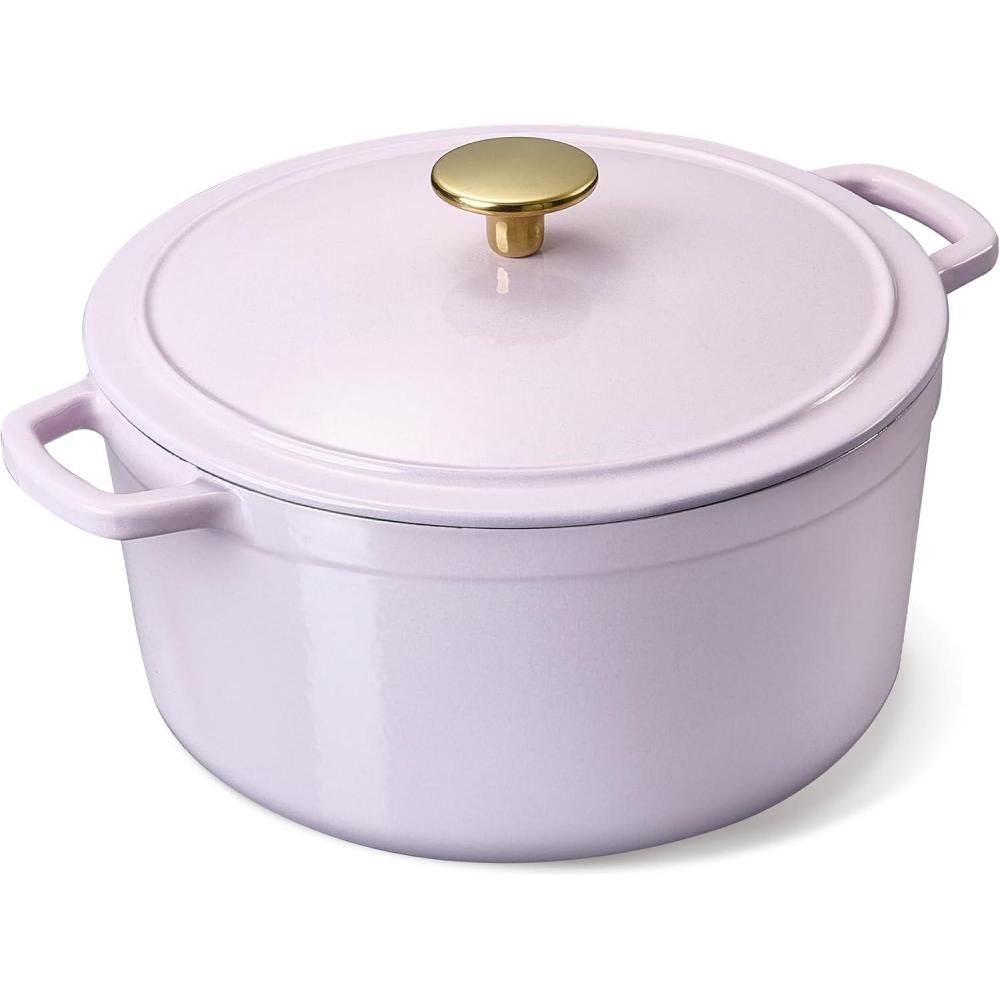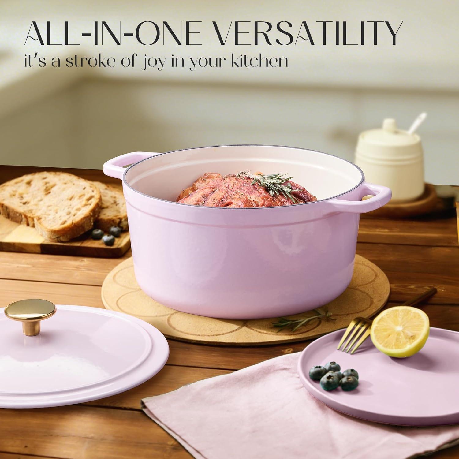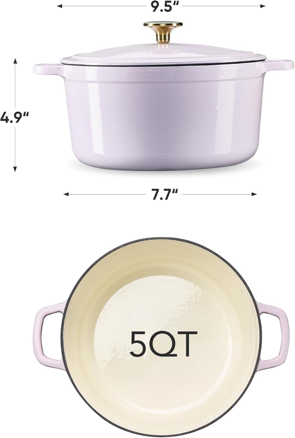 CAROTE 5QT Enameled Cast Iron Dutch Oven Pot with Lid, Heavy-Duty Dutch Ovens for Sourdough Bread Baking, Braising, Roasting, Dual Handles, Healthy & Non-Toxic, All Stovetop Compatible, Oven Safe up to 500° F, Macaron Pink(Macaron Purple)