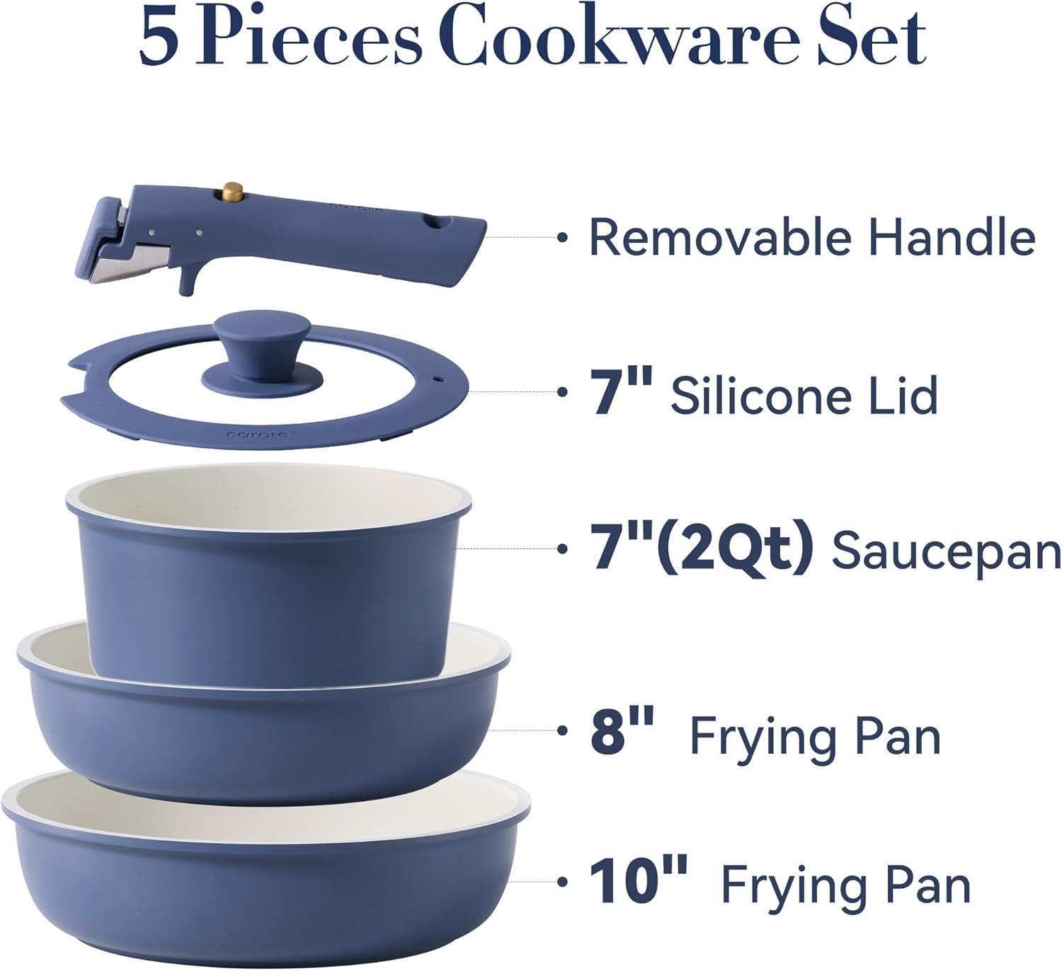 CAROTE 6pcs Pots and Pans Set Non Stick, Cookware Sets, Kitchen Set, Oven/Fridge Safe, Space Saving Pots Set, Nonstick Cooking Set with Versatile Detachable Handle, Induction RV Set, Jet Black(Blue)