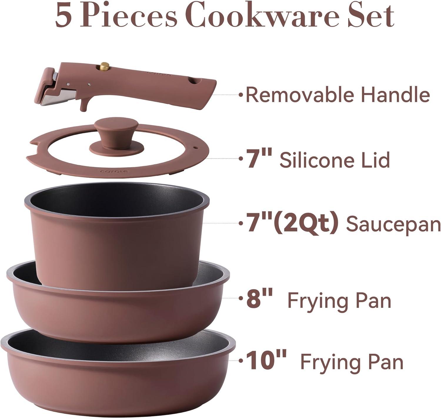 Balanced convenience-rich features, rapid & even heat transfer, and nonstick performance as the same as other Carote cookware sets.