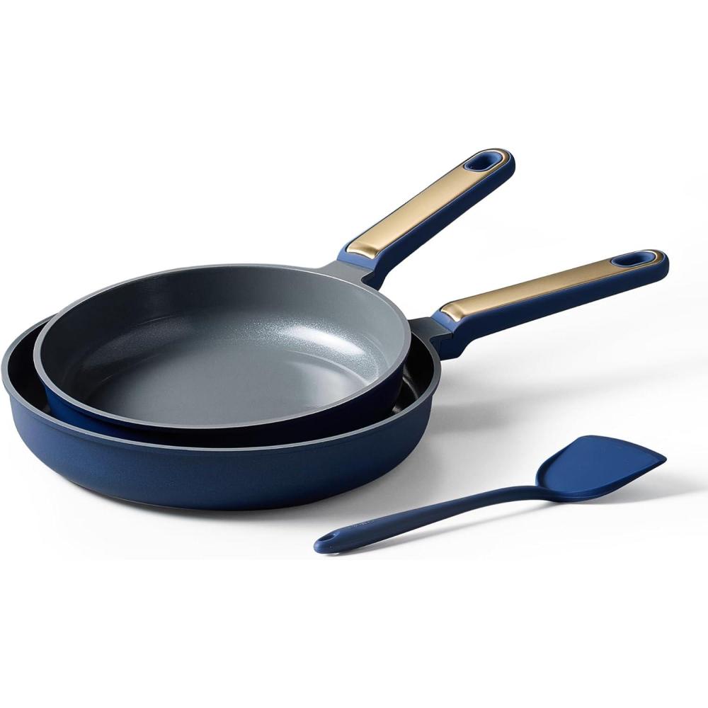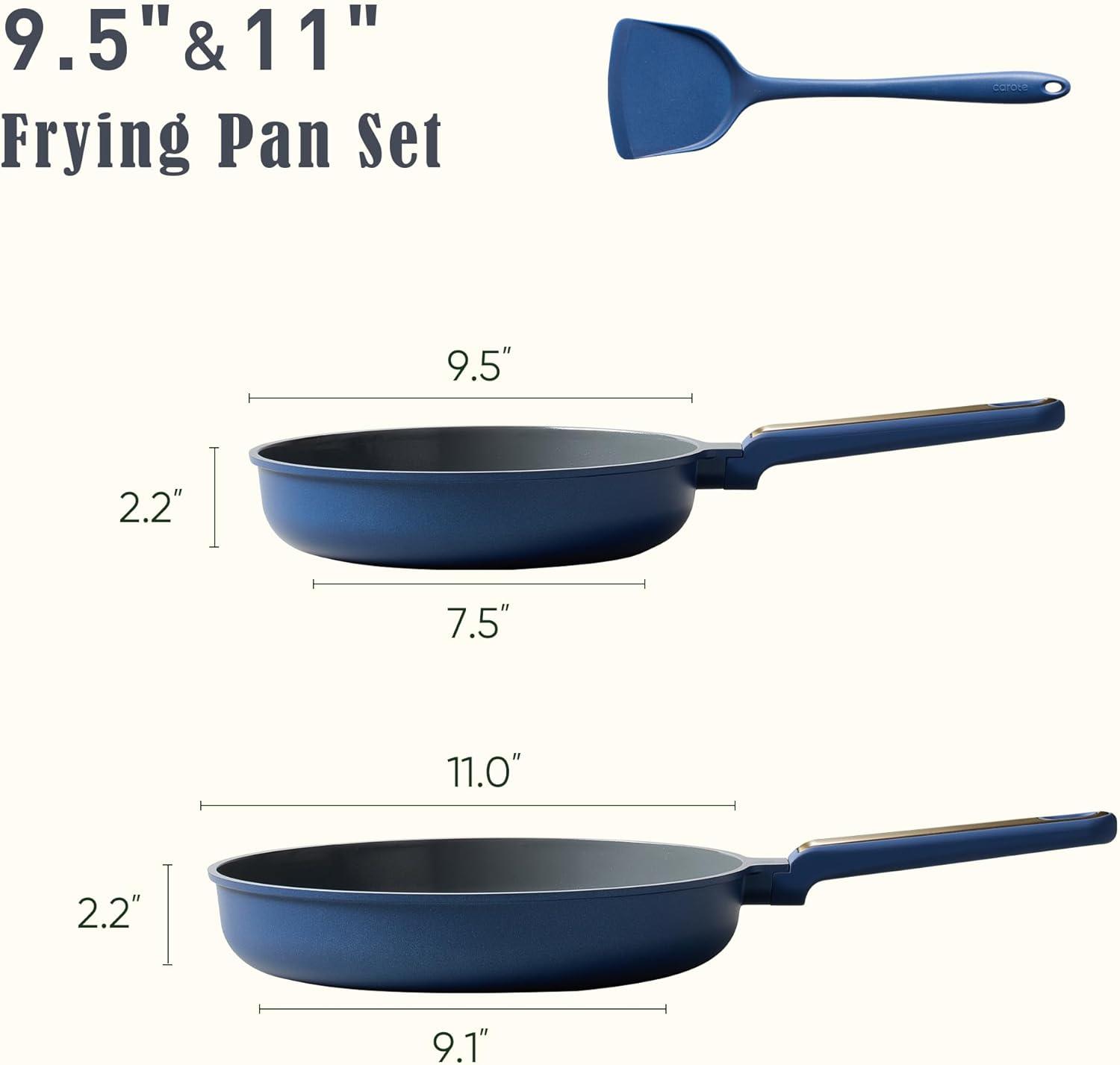imageCAROTE 8 and 10 Nonstick Ceramic Frying Pans SkilletNonStick Fry Pan Egg Pan Omelet PansHealthy amp PFOAPFAS Free InductionCompatible Dishwasher Safe amp Includes Silicone SpatulaPinkBlue