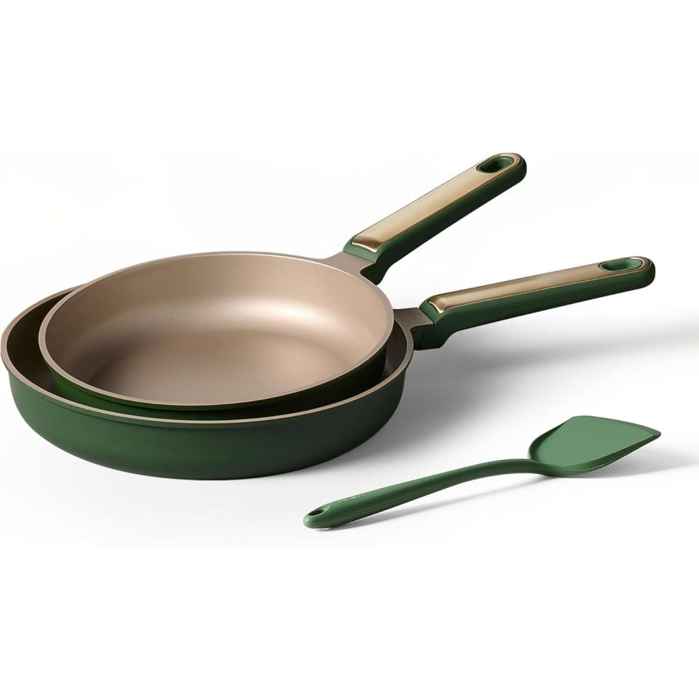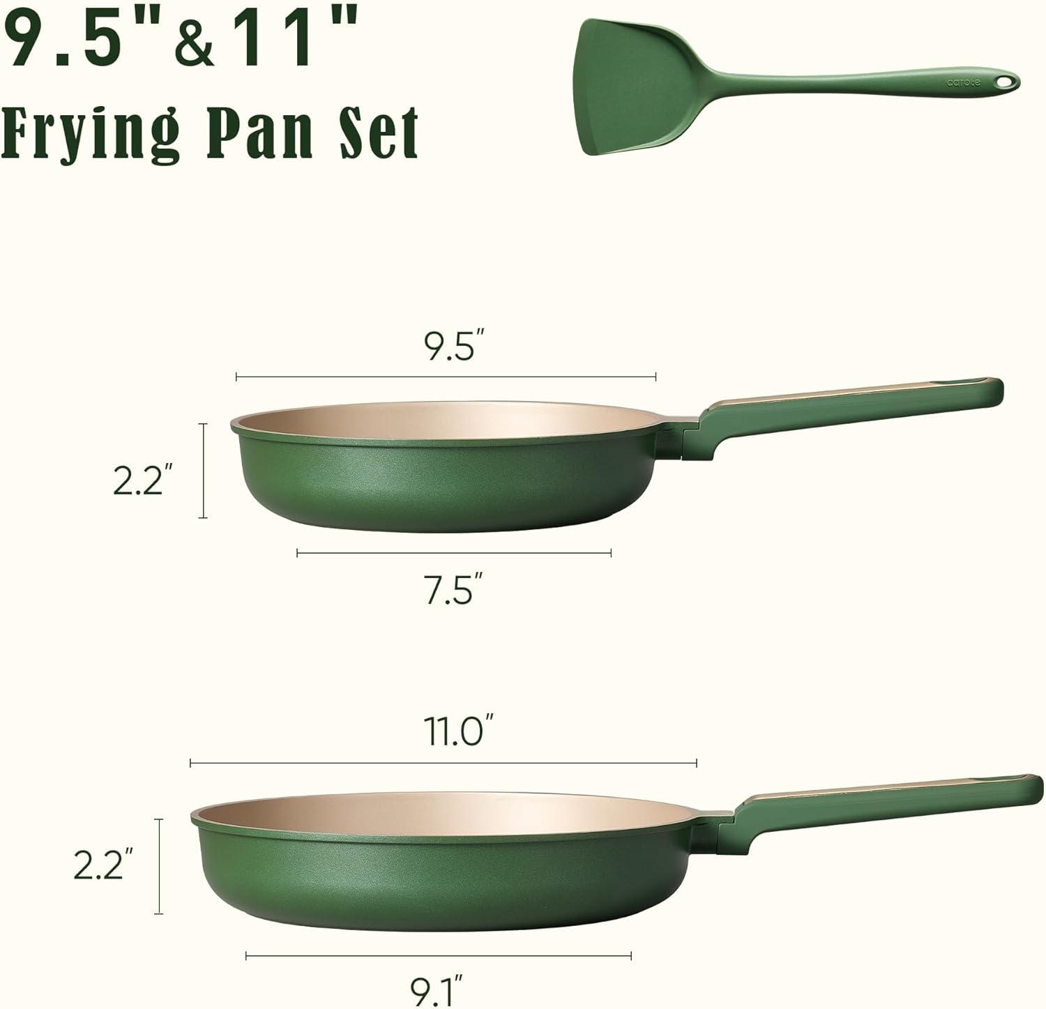 imageCAROTE 8 and 10 Nonstick Ceramic Frying Pans SkilletNonStick Fry Pan Egg Pan Omelet PansHealthy amp PFOAPFAS Free InductionCompatible Dishwasher Safe amp Includes Silicone SpatulaPinkGreen