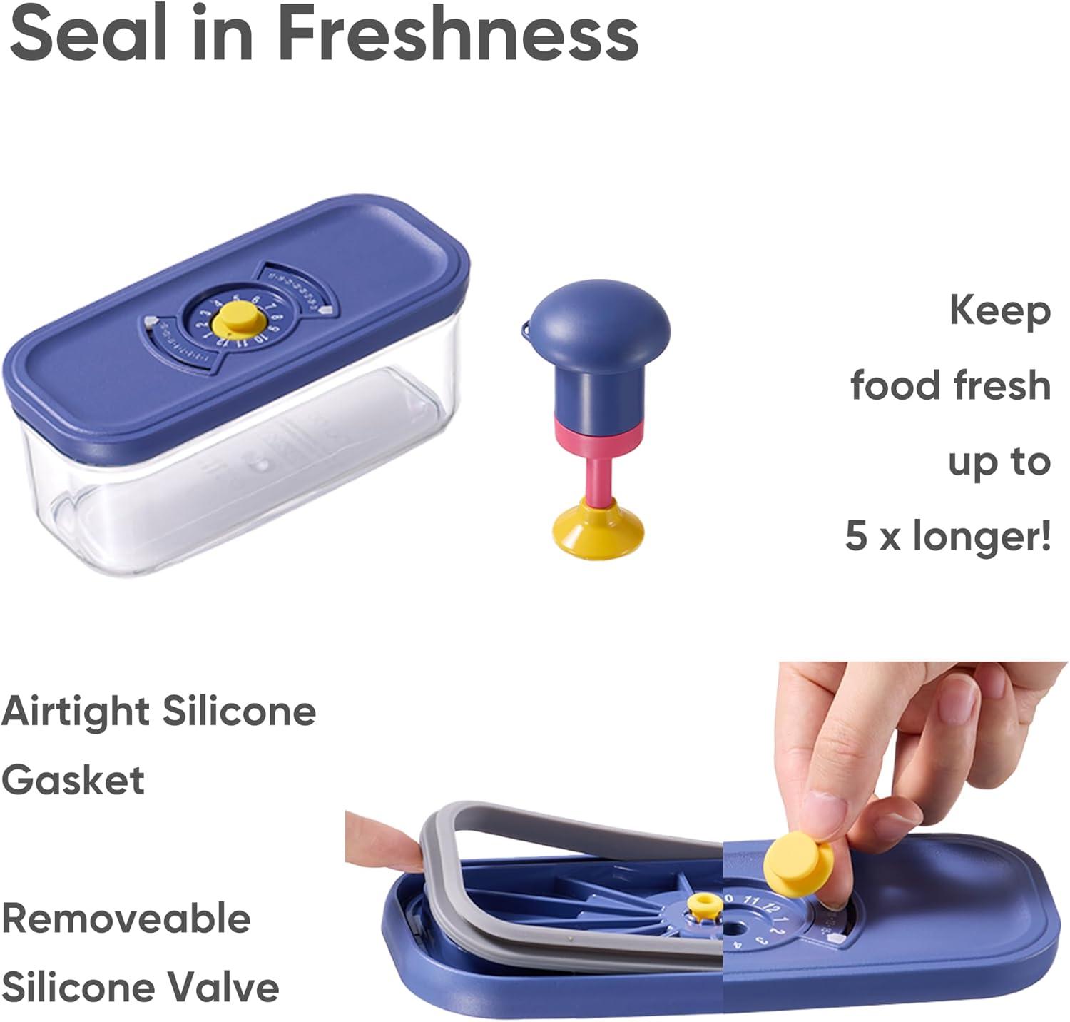 Leak-Proof and Vacuum Pump Design: CAROTE airtight storage containers feature a vacuum seal lid and pump. Easily remove air to keep your food fresh up to 5 times longer while preserving quality and flavor