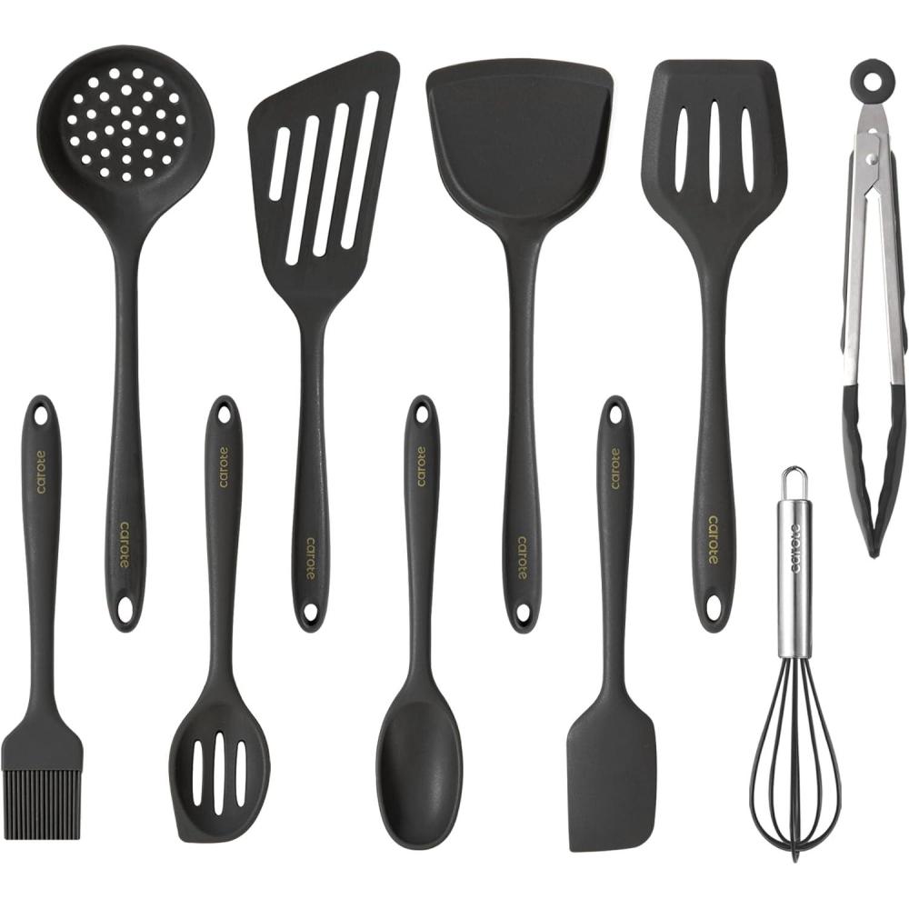 CAROTE Kitchen Utensil Set for Nonstick Cookware – 446°F Heat Resistant Silicone Cooking Utensils Set 10pcs, White, Oderless Spatula, Turner(Gray)