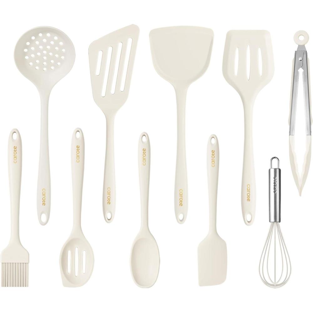CAROTE Kitchen Utensil Set for Nonstick Cookware – 446°F Heat Resistant Silicone Cooking Utensils Set 10pcs, White, Oderless Spatula, Turner(White)