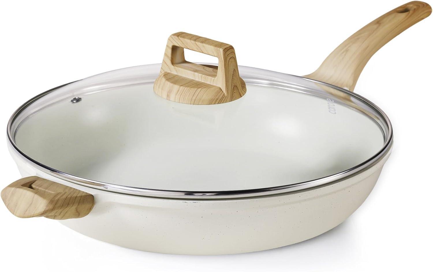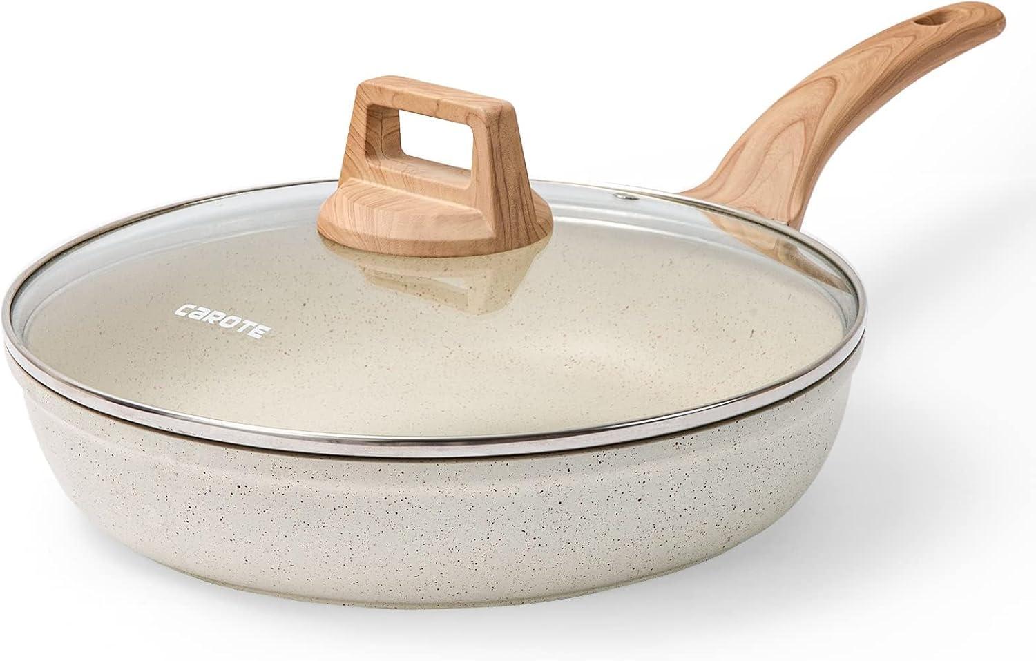 CAROTE Non Stick Frying Pan Skillet, 8" Nonstick Fry Pan with Glass Lid, Egg Pan Omelet Pans, Granite Cookware, PFOA Free (Classic Granite, 8-Inch)(White)