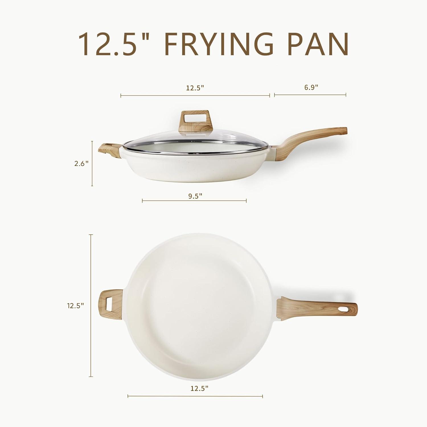 Eco-friendly Granite Nonstick Material: Nonstick granite material. Less oil needed & less smoke released, our frying pan provides your daily cooking always safer and healthier. Excellent non stick performance keeps food sliding smoothly along the surface for easy clean.