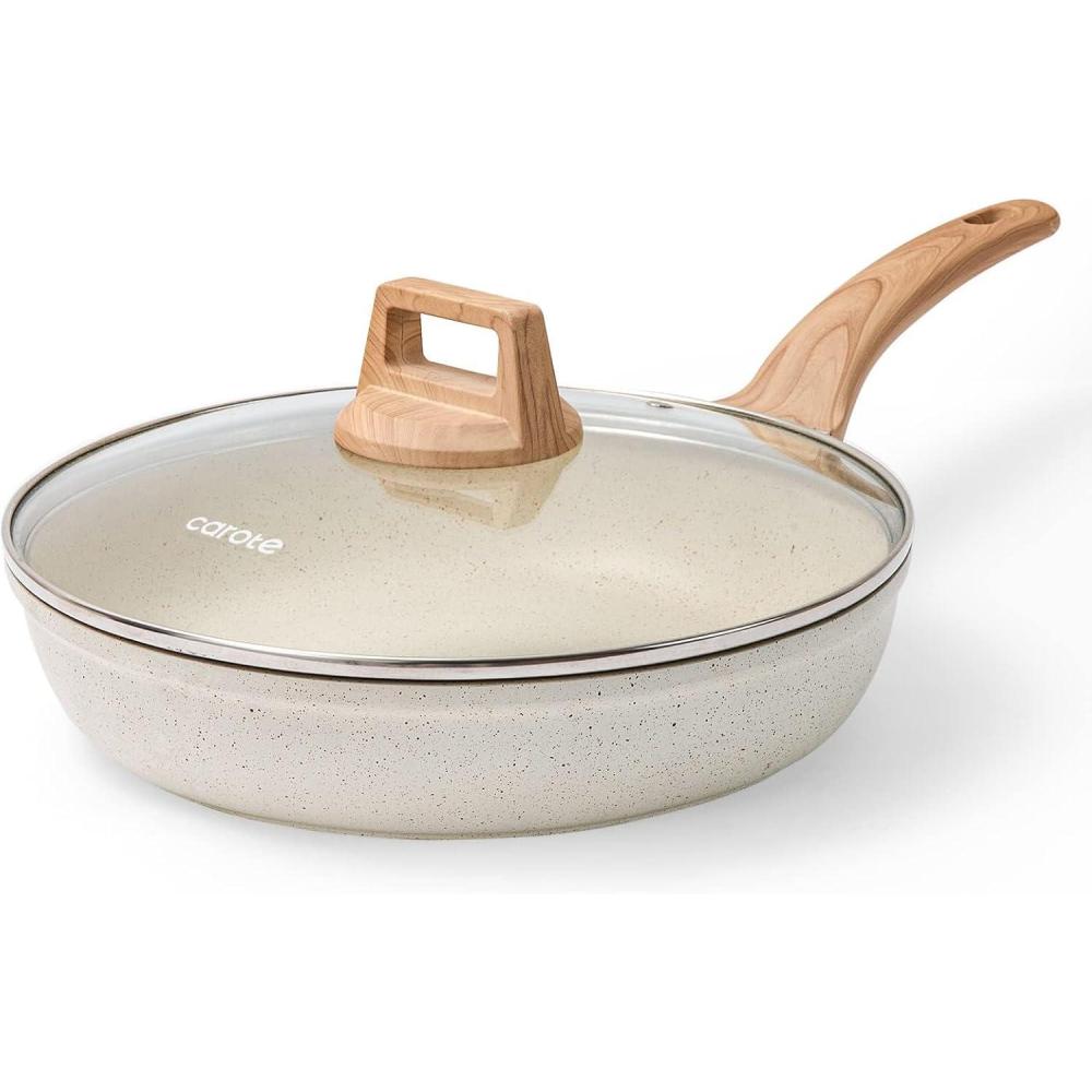imageCAROTE Non Stick Frying Pan Skillet 8quot Nonstick Fry Pan with Glass Lid Egg Pan Omelet Pans Granite Cookware PFOA Free Classic Granite 8InchWhite