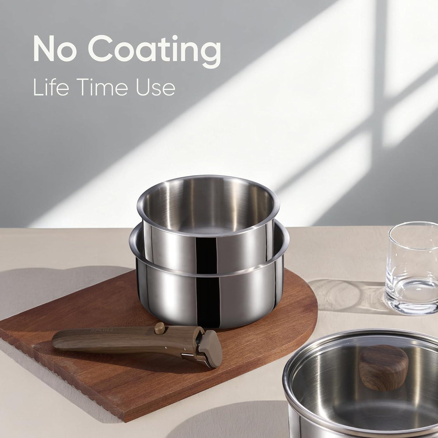 imageCAROTE TriPly Stainless Steel Sauce Pan with Detachable Handle15QT Saucepan2QT ampamp 3QT Saucepan with Lid 8PCS NonToxic Induction Kitchen Stainless Steel PotRemovable HandleOven SafeWoodgrain10pcs
